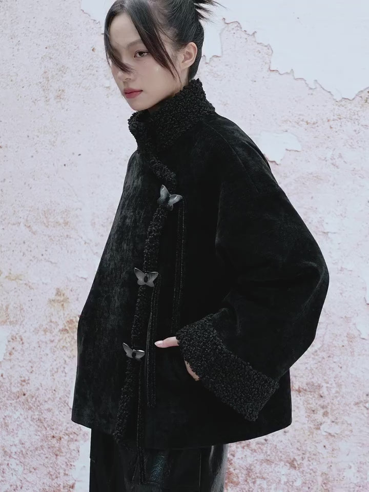Black Flocking Knitted Cheongsam Fishtail Skirt | Chiffon Open-Sleeve Outer Cover