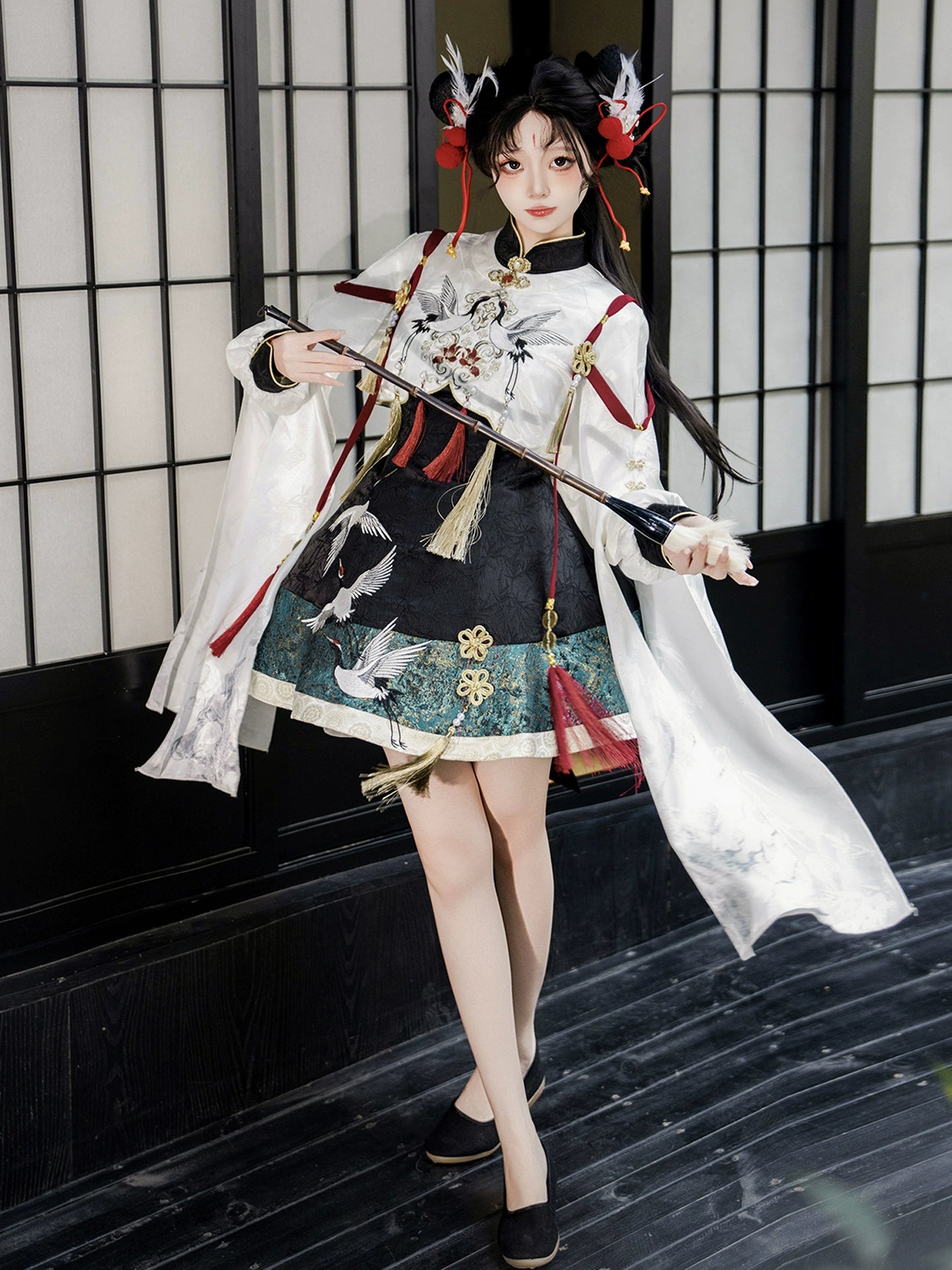 Discover the perfect blend of traditional Chinese aesthetics and Lolita fashion with this stunning crane-embroidered dress set. Featuring intricate embroidery, elegant frog button closures, and flowing tassel accessories, this ensemble captures the essence of classical Chinese beauty with a modern twist.