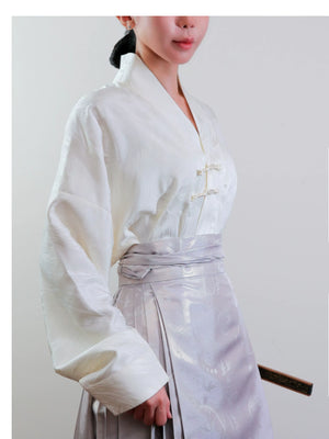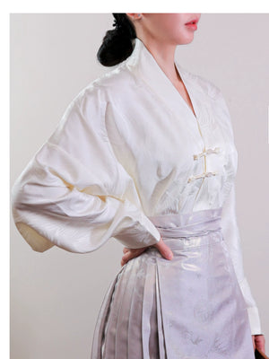 Aircraft Sleeve Shirt | Jacquard Dark Pattern Women’s Hanfu Top | New Chinese Style Horse-Face Skirt Pairing