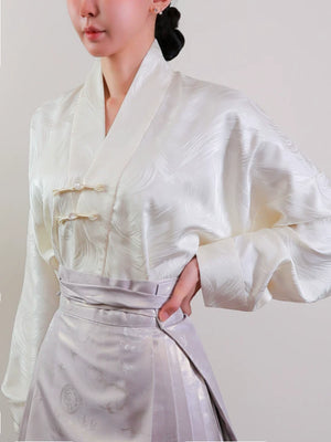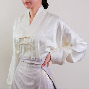 Structured, elegant, and deeply rooted in Chinese textile tradition — this Original Aircraft Sleeve Shirt features a jacquard dark pattern (暗花提花) woven directly into the fabric, creating a subtle, tonal texture that catches the light with understated sophistication. Available in Black and Beige, this shirt is designed as a versatile pairing top for horse-face skirts and modern hanfu ensembles.