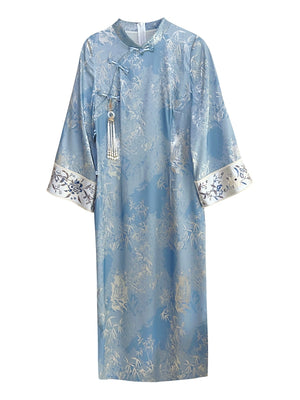 “Azure Spring” – New Chinese Embroidered Qipao | Plus-Friendly, Slimming Early-Spring Dress