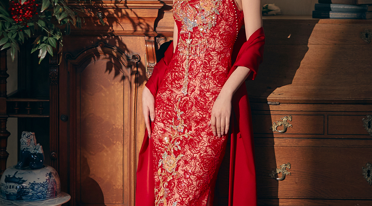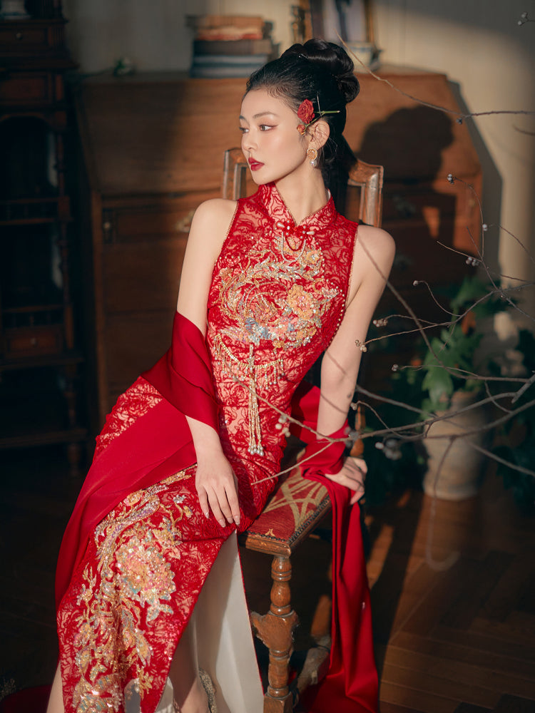 Beloved Dream – New Chinese Red Bridal Qipao/Cheongsam Dress for Engagement, Wedding Toast & Spring Ceremony