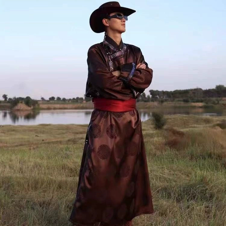 Black Mongolian-Inspired Robe for Men | Modern Ethnic Daily Wear