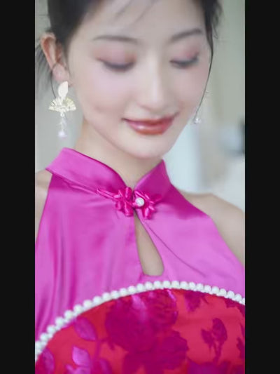 "Chuni" Drachenfruchtfarbe Jacquard Cheongsam Braut