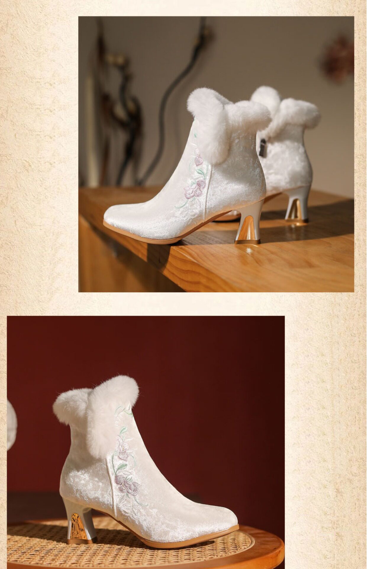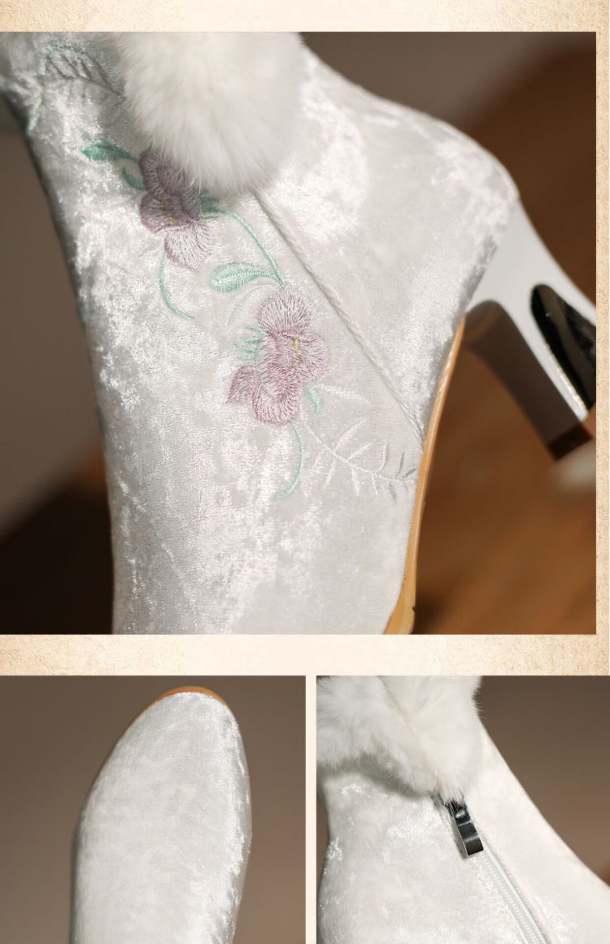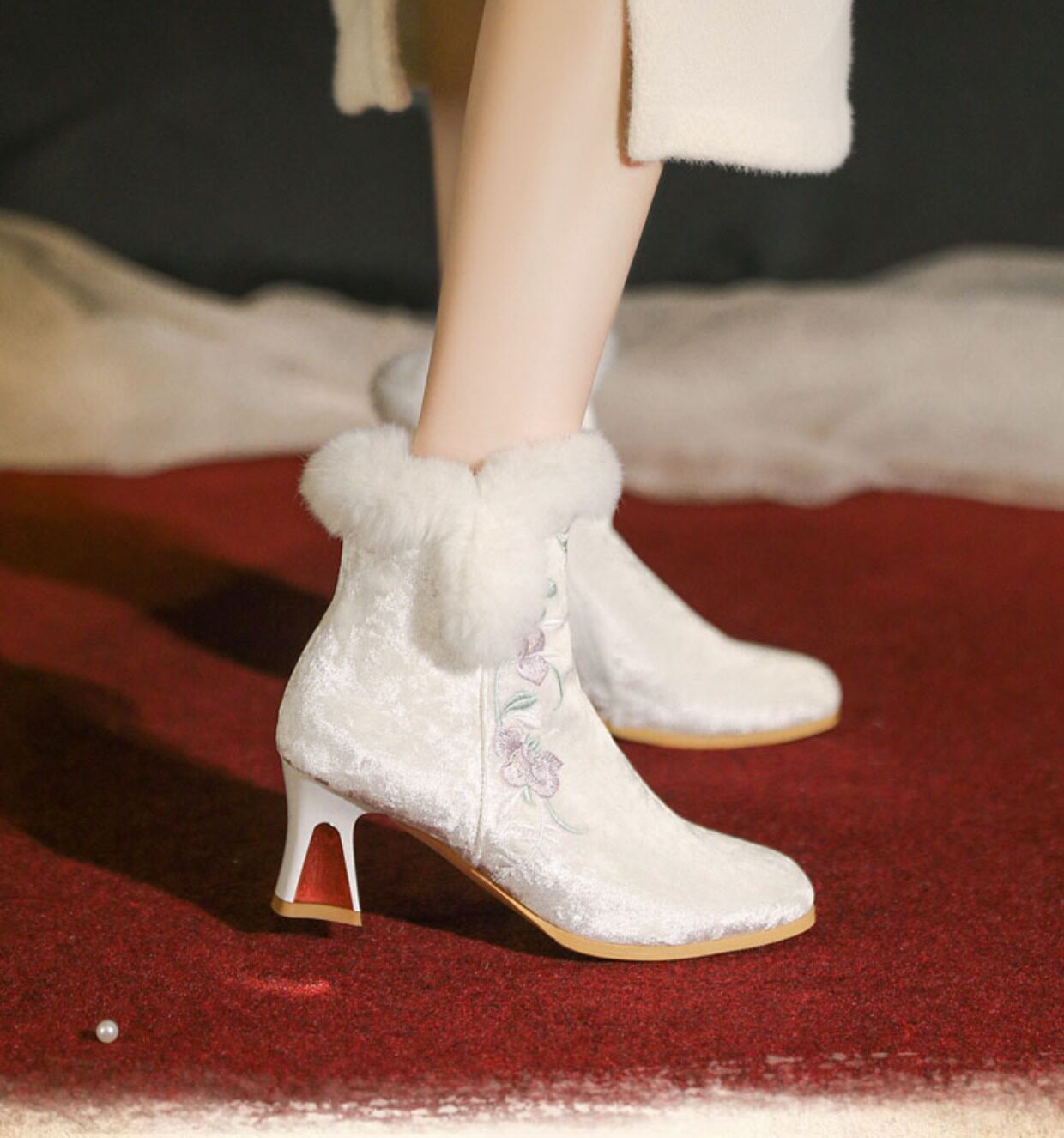 Embroidered Block-Heel Qipao Boots – Chic Oriental Short Ankle Boots for Autumn/Winter