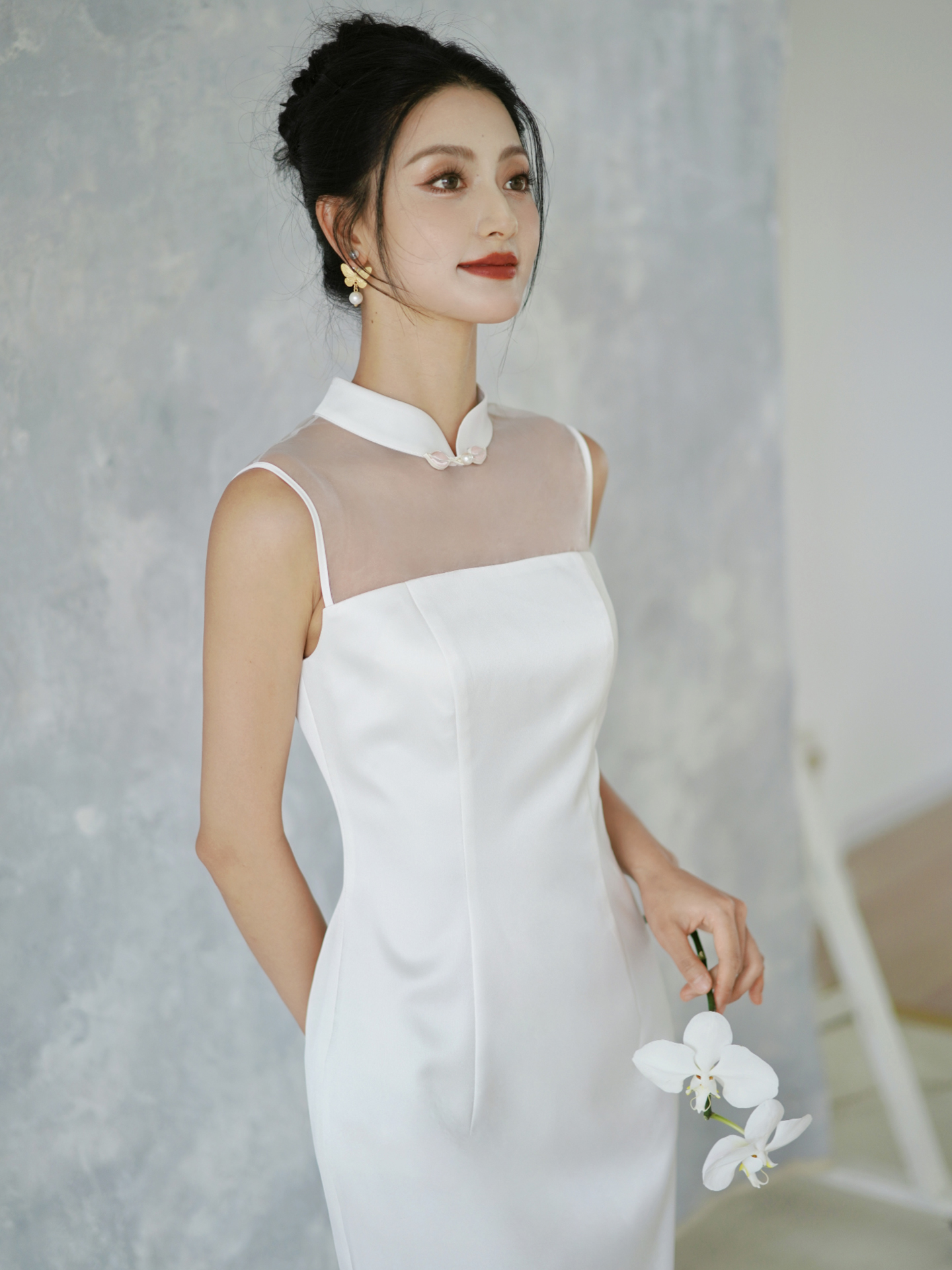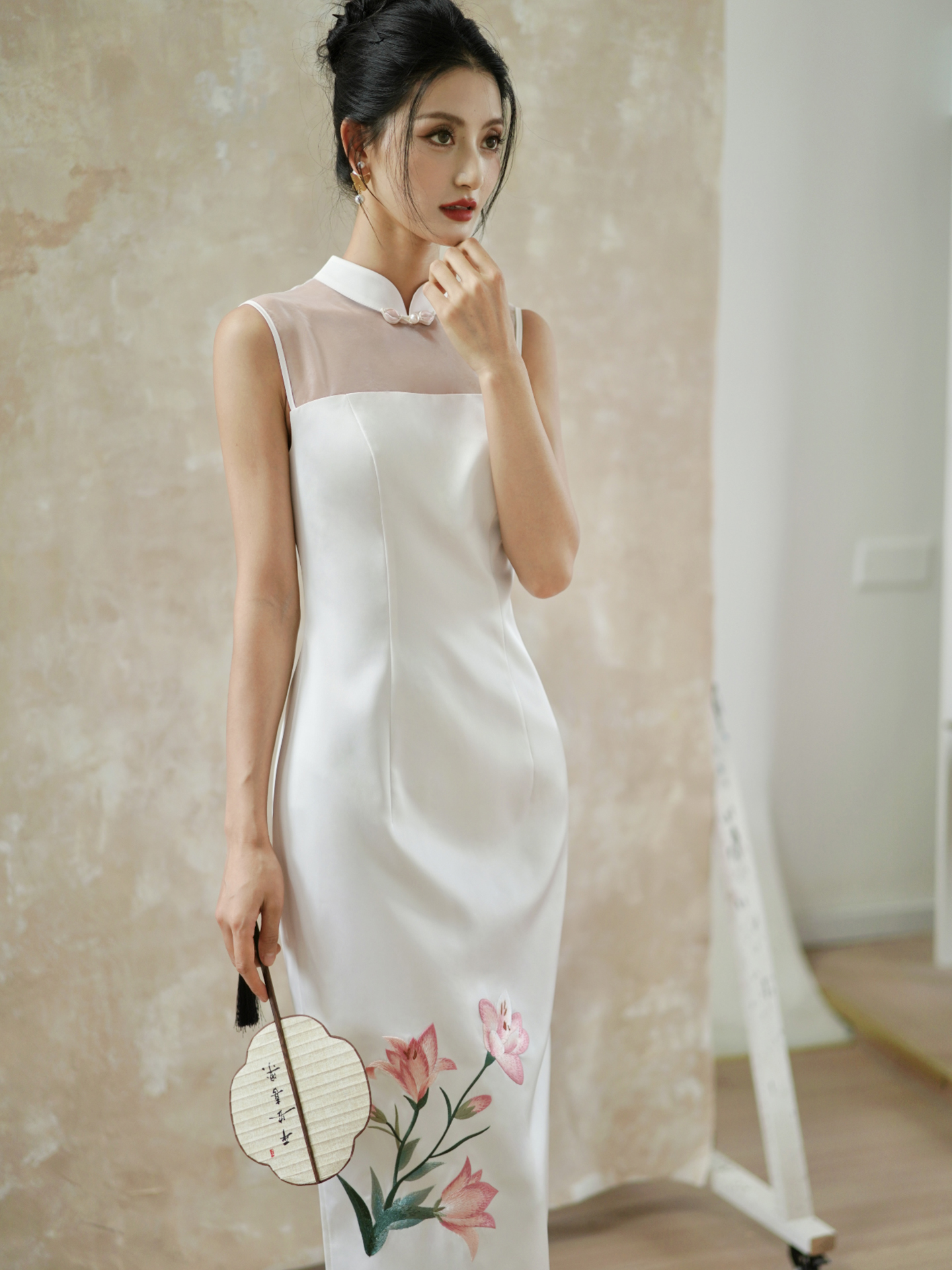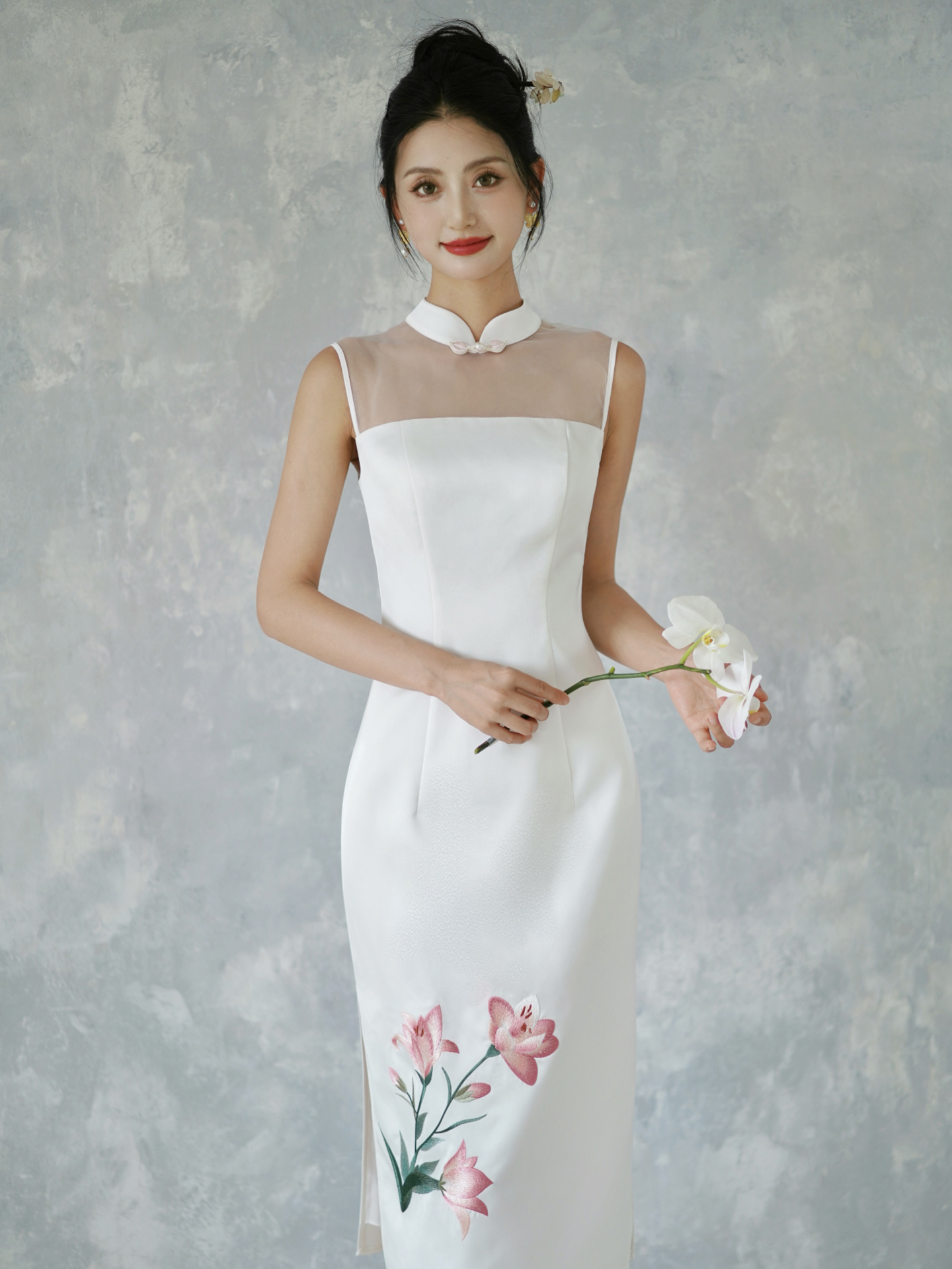 Eternal Union – White Embroidered Qipao | Chinese Wedding Reception & Engagement Dress