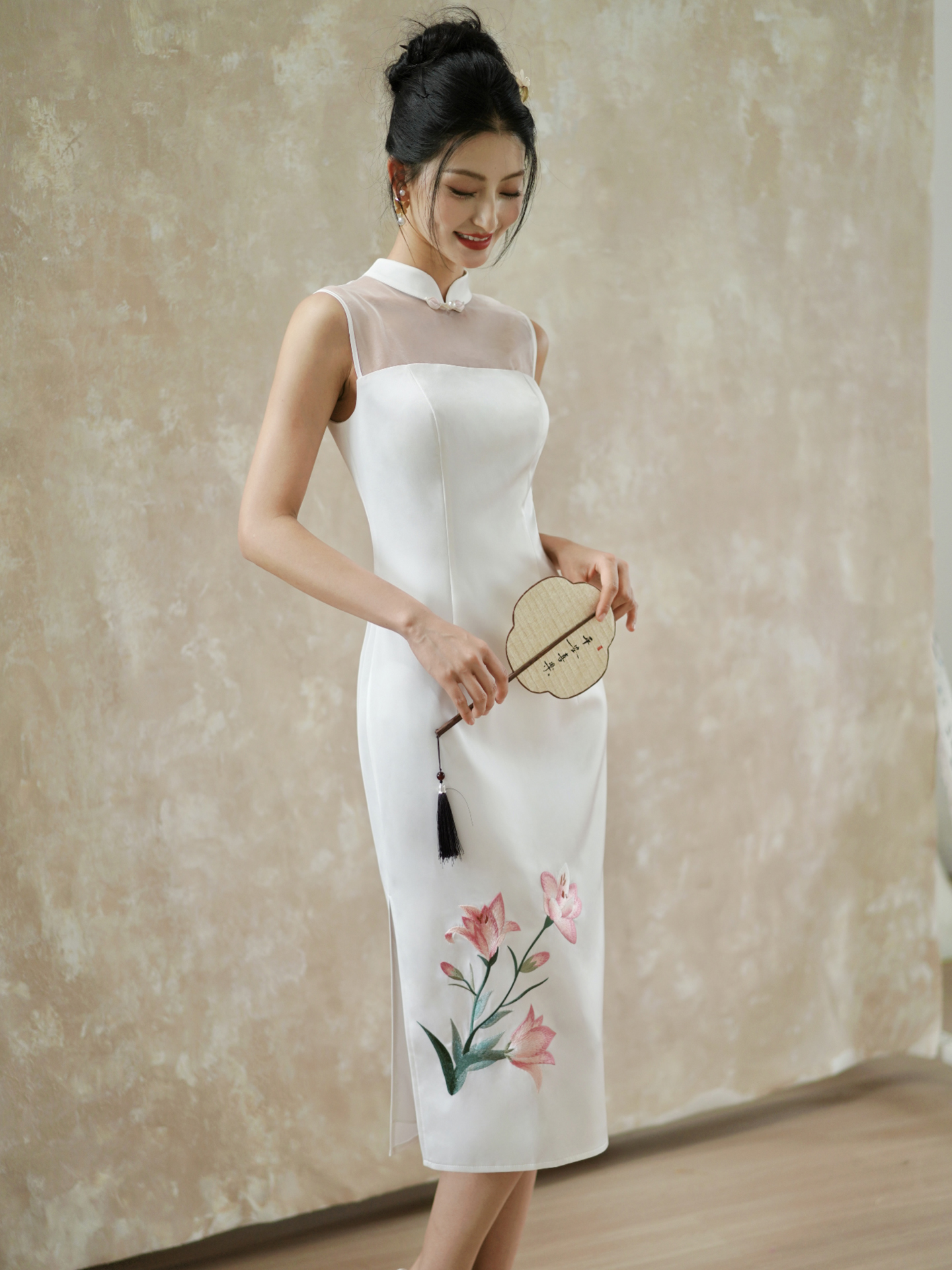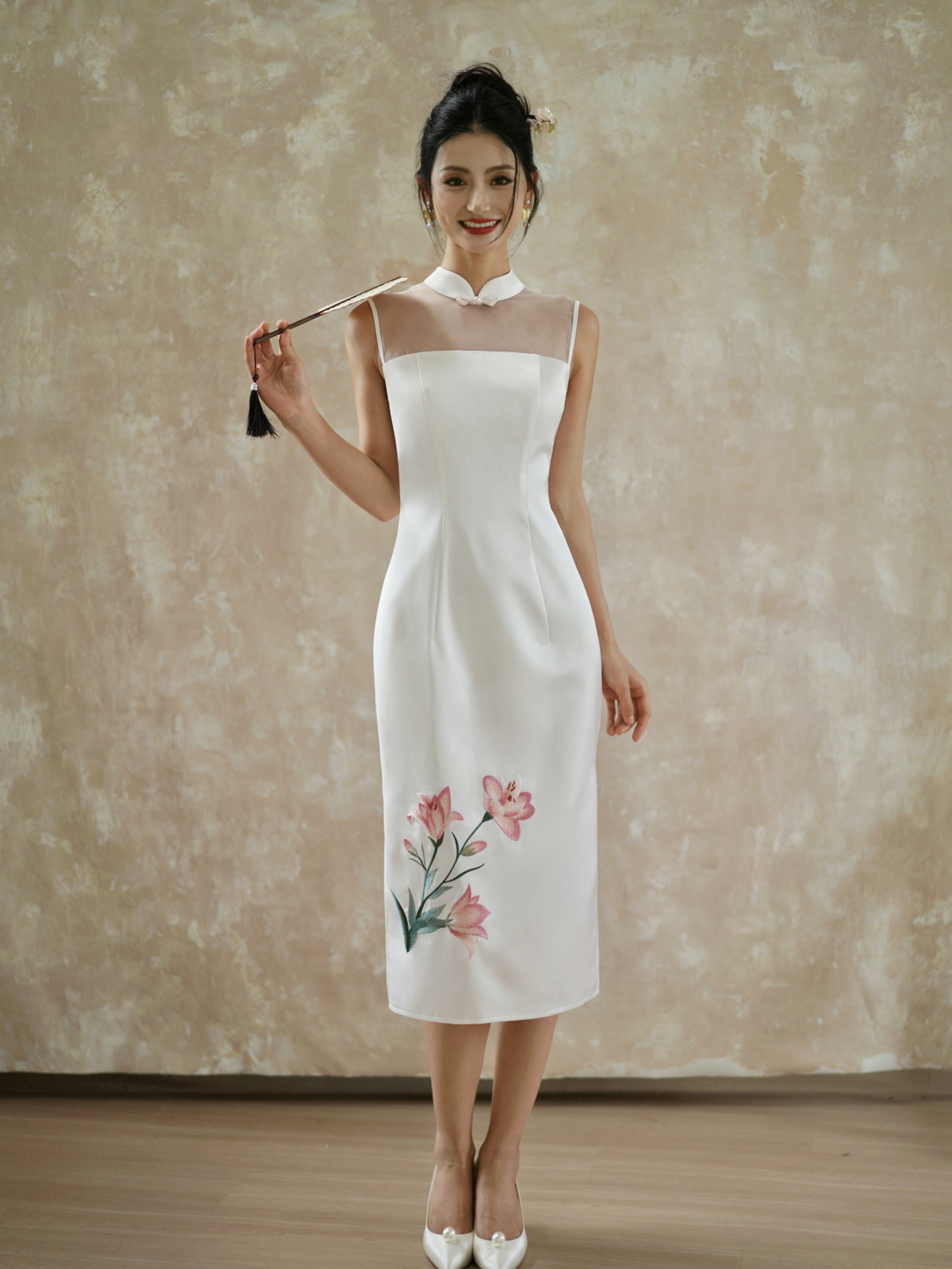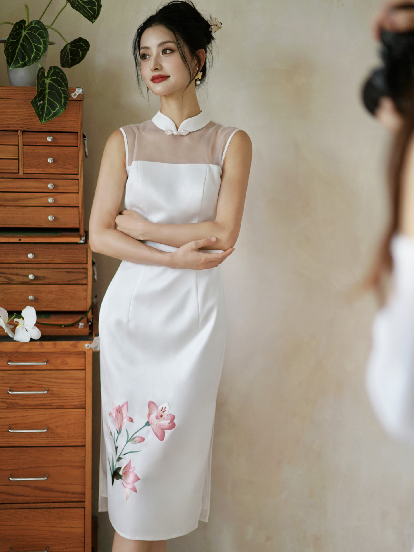 Eternal Union – White Embroidered Qipao | Chinese Wedding Reception & Engagement Dress