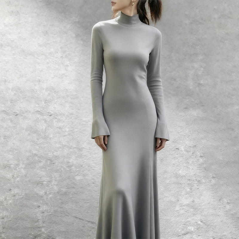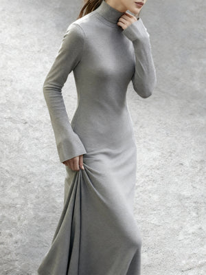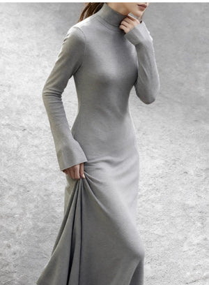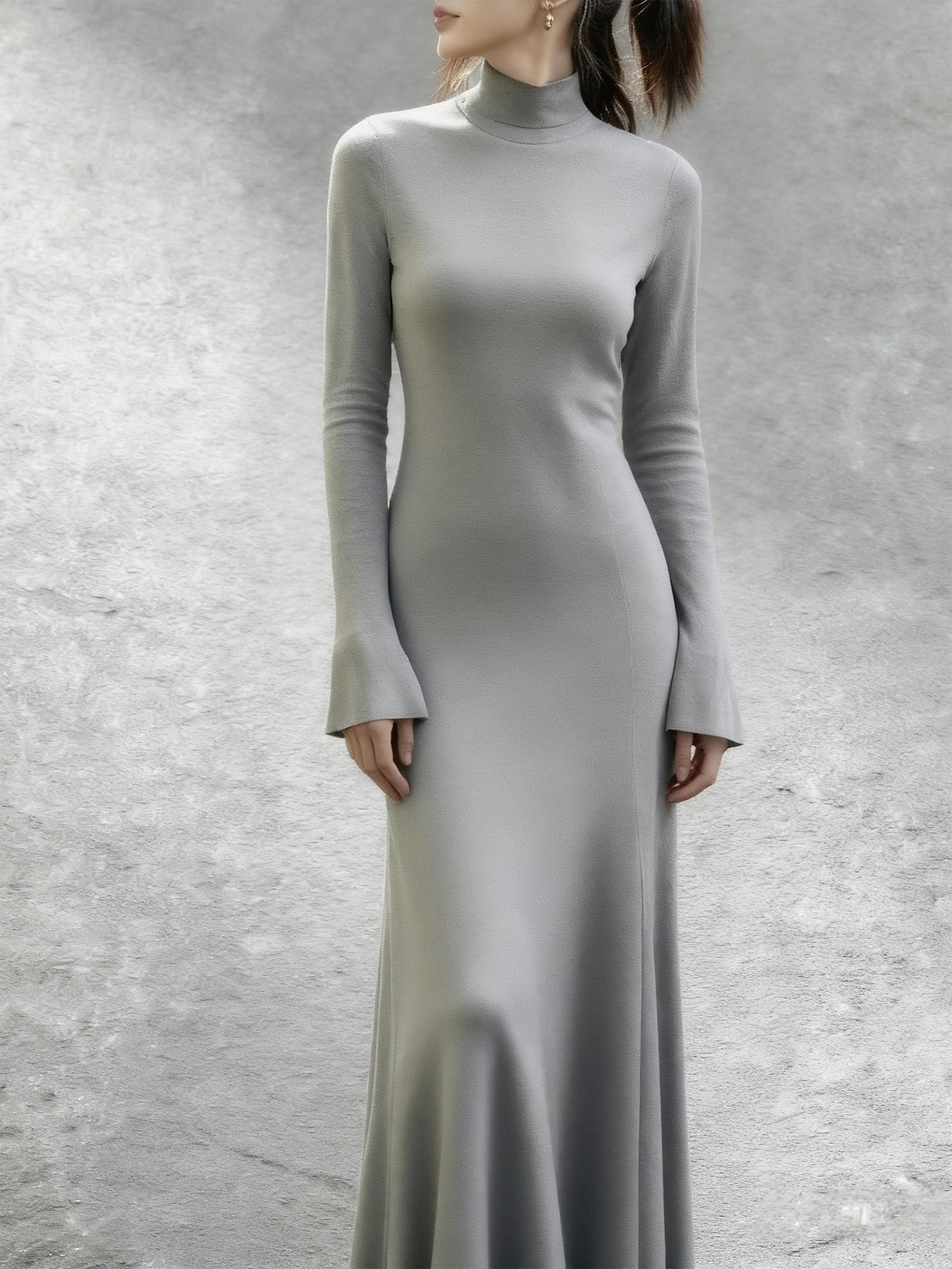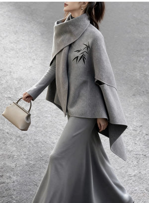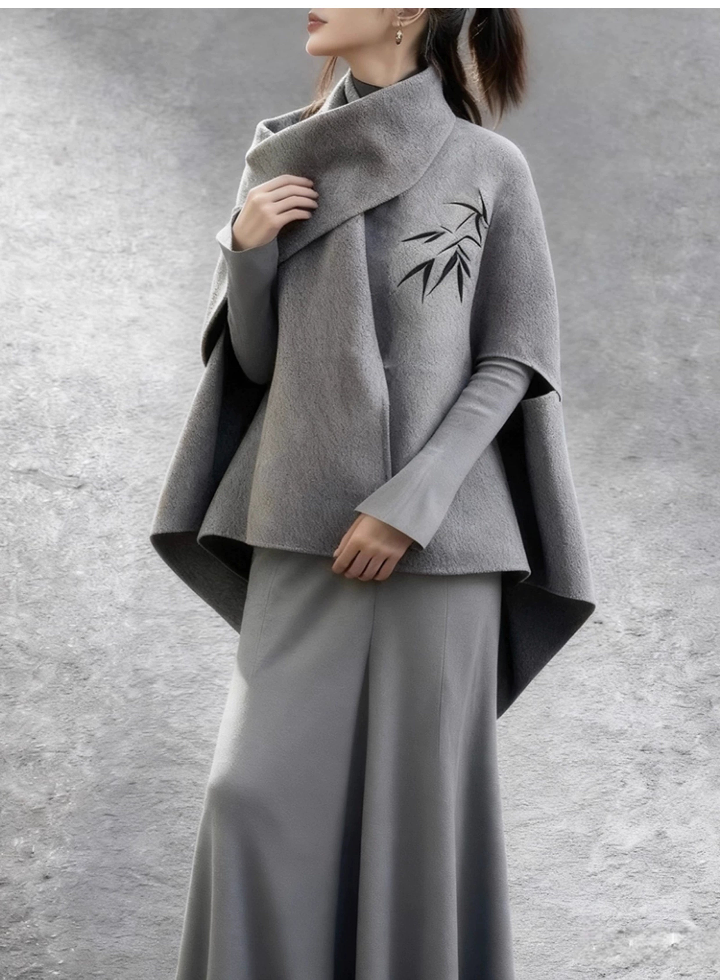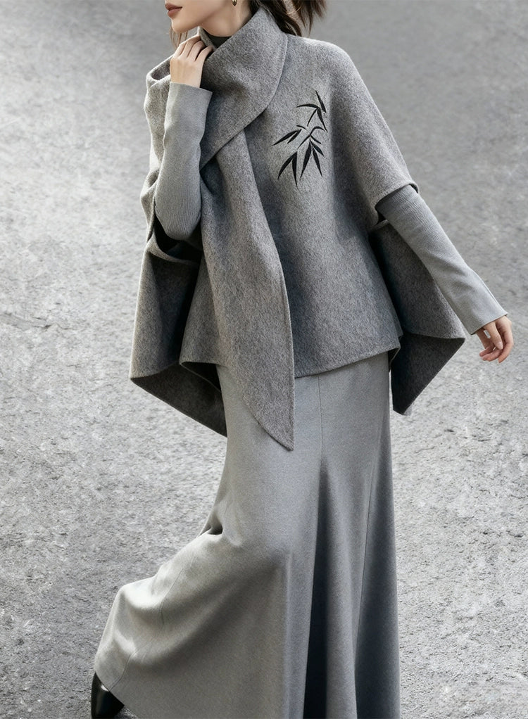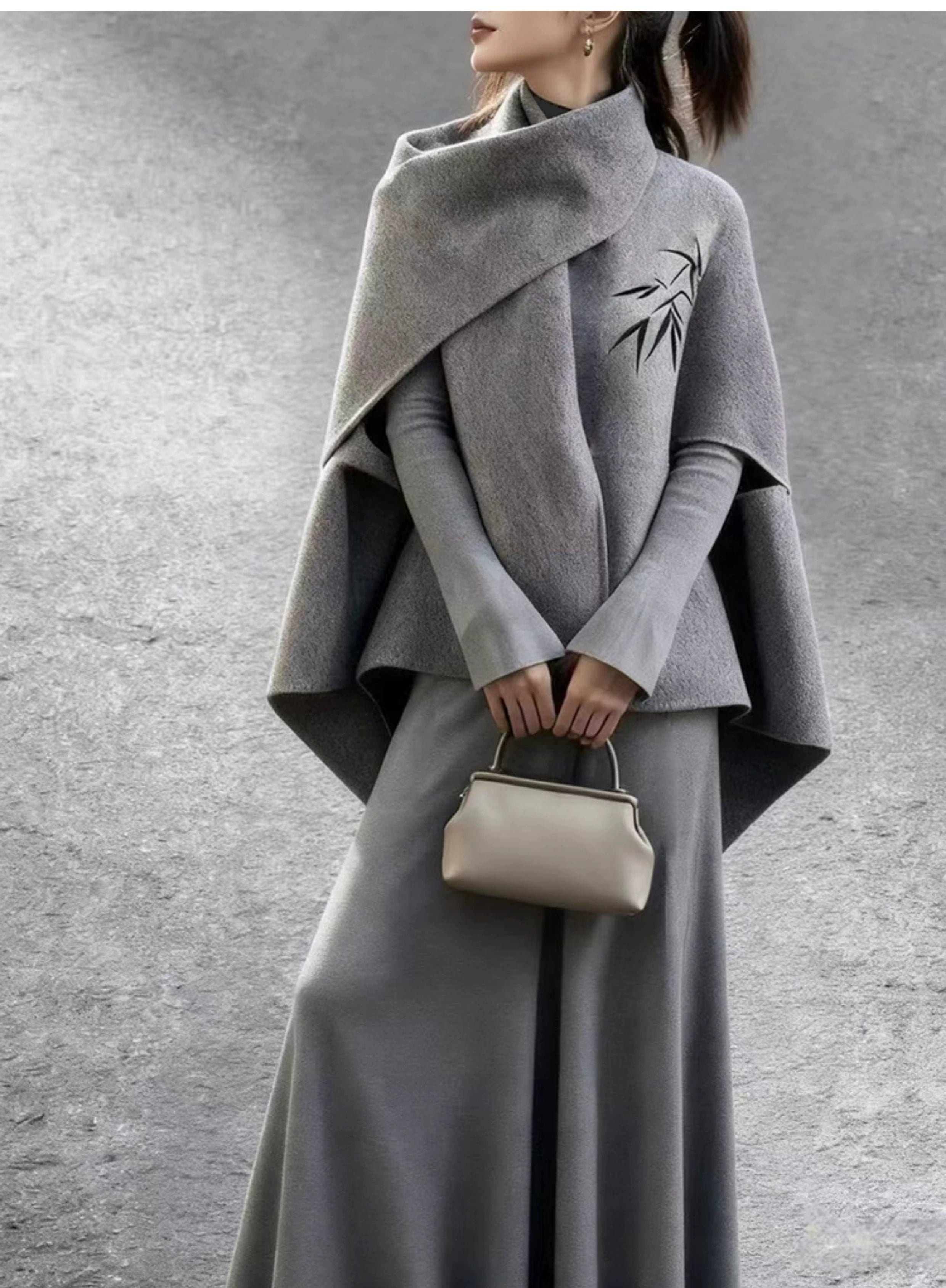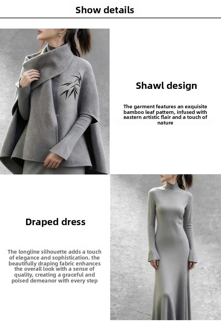 Grey Wool Cape Set – Short Cloak Jacket & Knit Dress | Soft Relaxed Fit