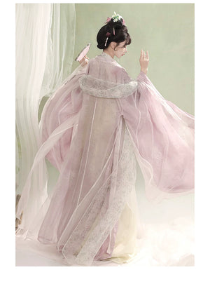 The Hua Chenxiyue Tang Dynasty Hanfu Set is a love letter to the golden age of Chinese fashion. The sweeping wide sleeves of the outer shirt cascade like wings in motion, while the chest-length eight-panel broken skirt creates a layered, flowing silhouette that is both historically faithful and breathtakingly beautiful. Layer the full six-piece set for a complete Tang court look, or style the three-piece set for a lighter, more versatile everyday hanfu aesthetic.