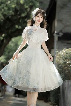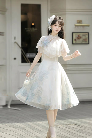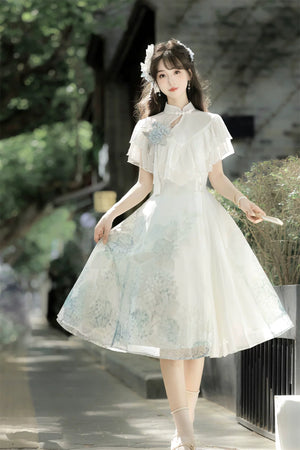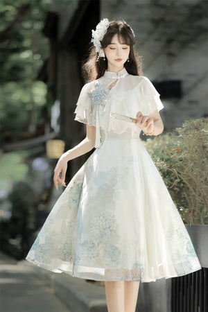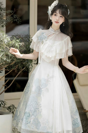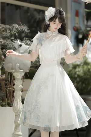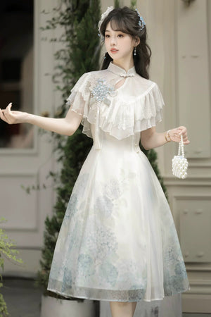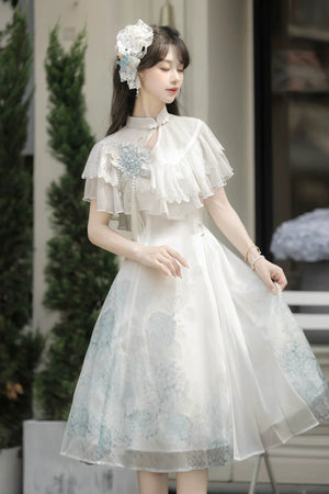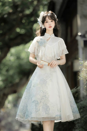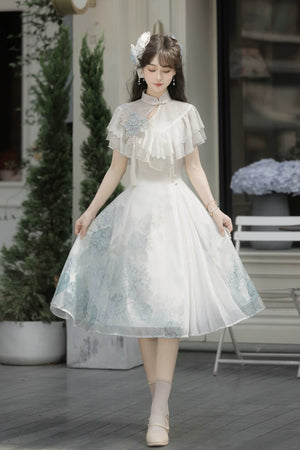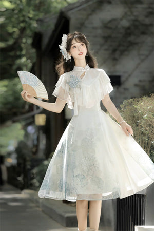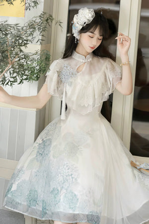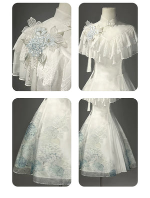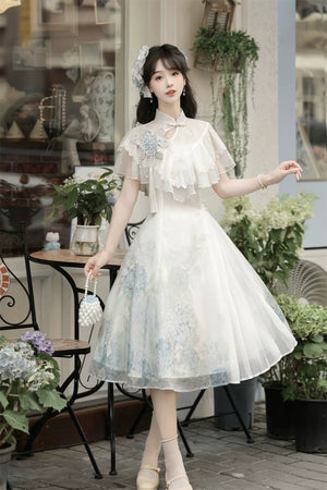 Hydrangea Message Lolita – Short-Sleeve Shawl & Suspender Skirt Set – Elegant Daily Lolita Dress