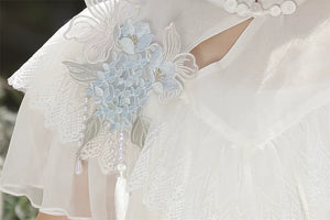 Soft, dreamy, and quietly enchanting — this Hydrangea Message Lolita dress set captures the gentle, watercolour beauty of hydrangea blooms in a beautifully wearable daily Lolita silhouette. Designed for the Lolita who loves understated elegance over maximalist drama, this set pairs a delicate short-sleeve shawl with a flowing suspender skirt for a coordinated look that is equally at home at a tea party or a casual cultural outing.