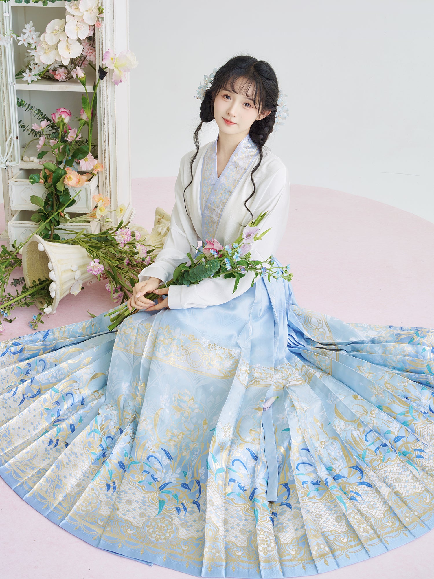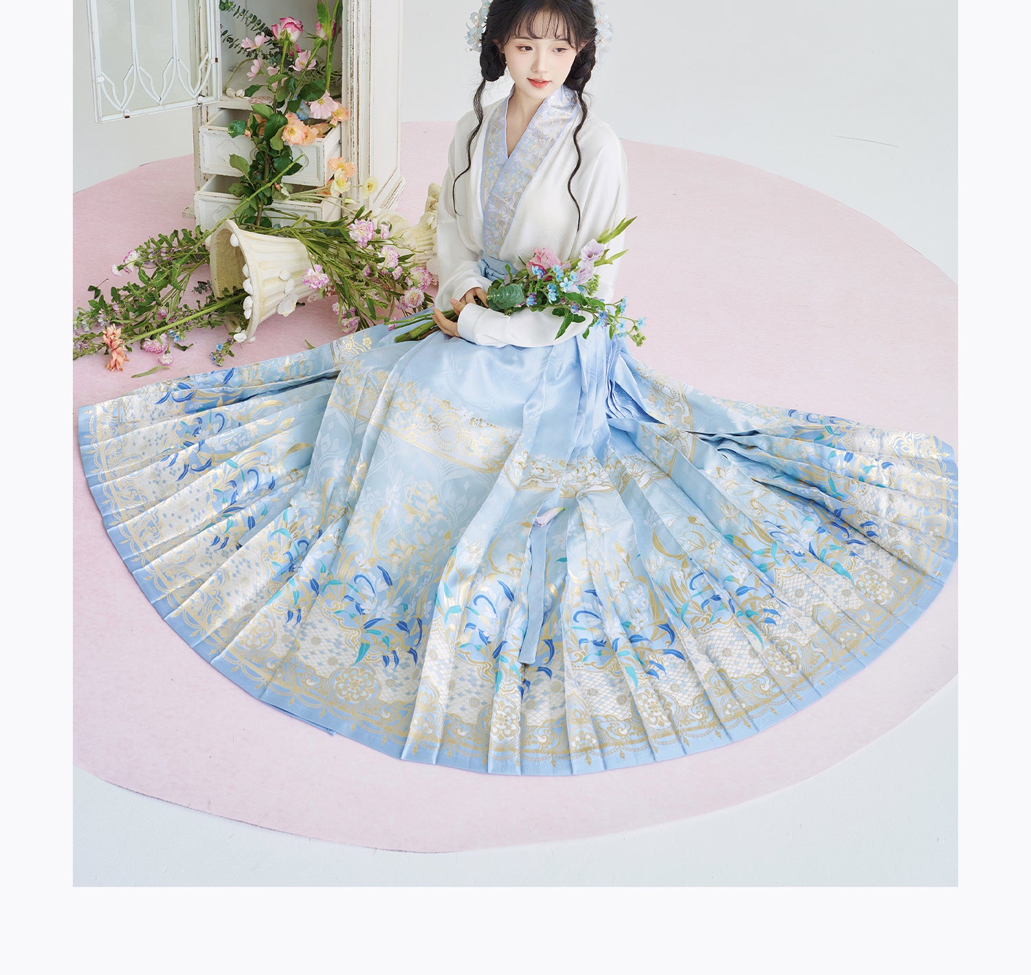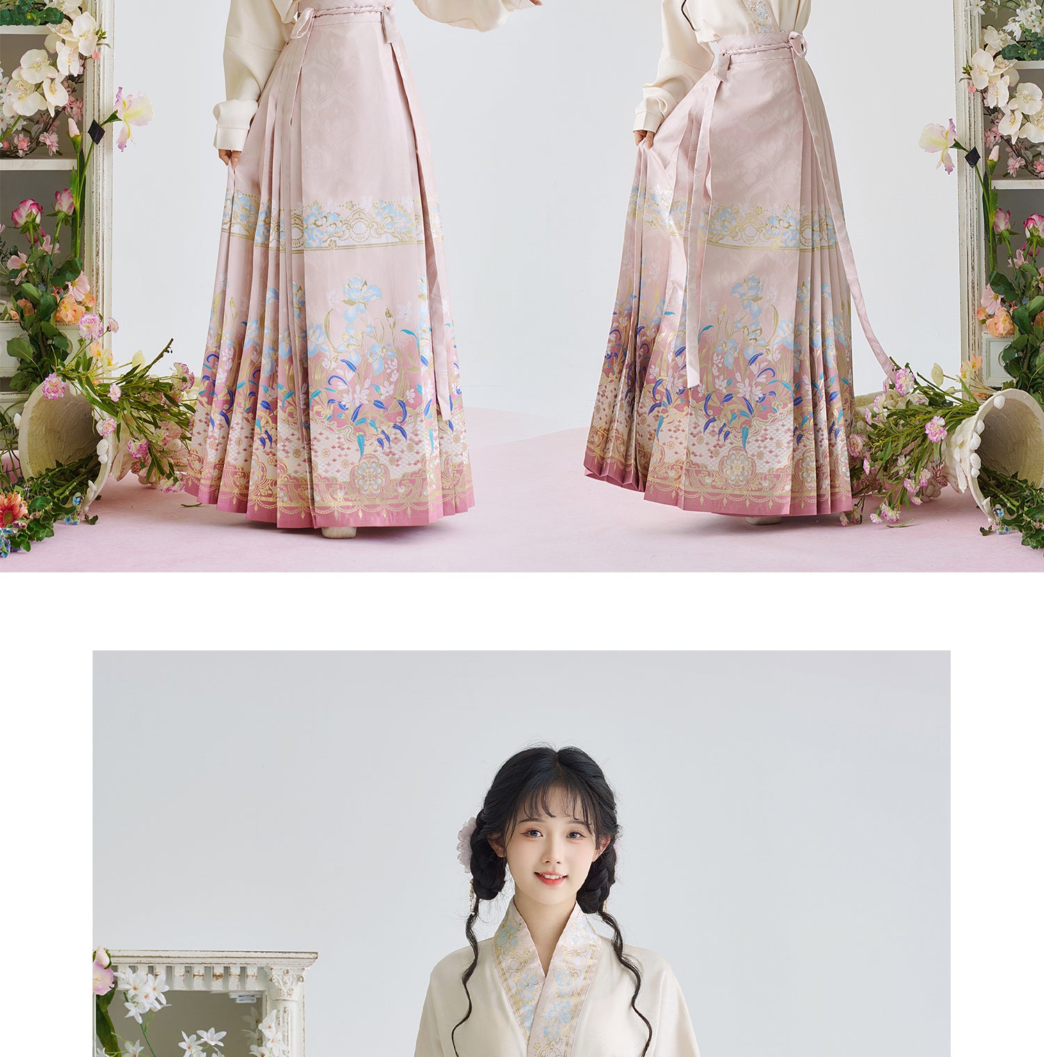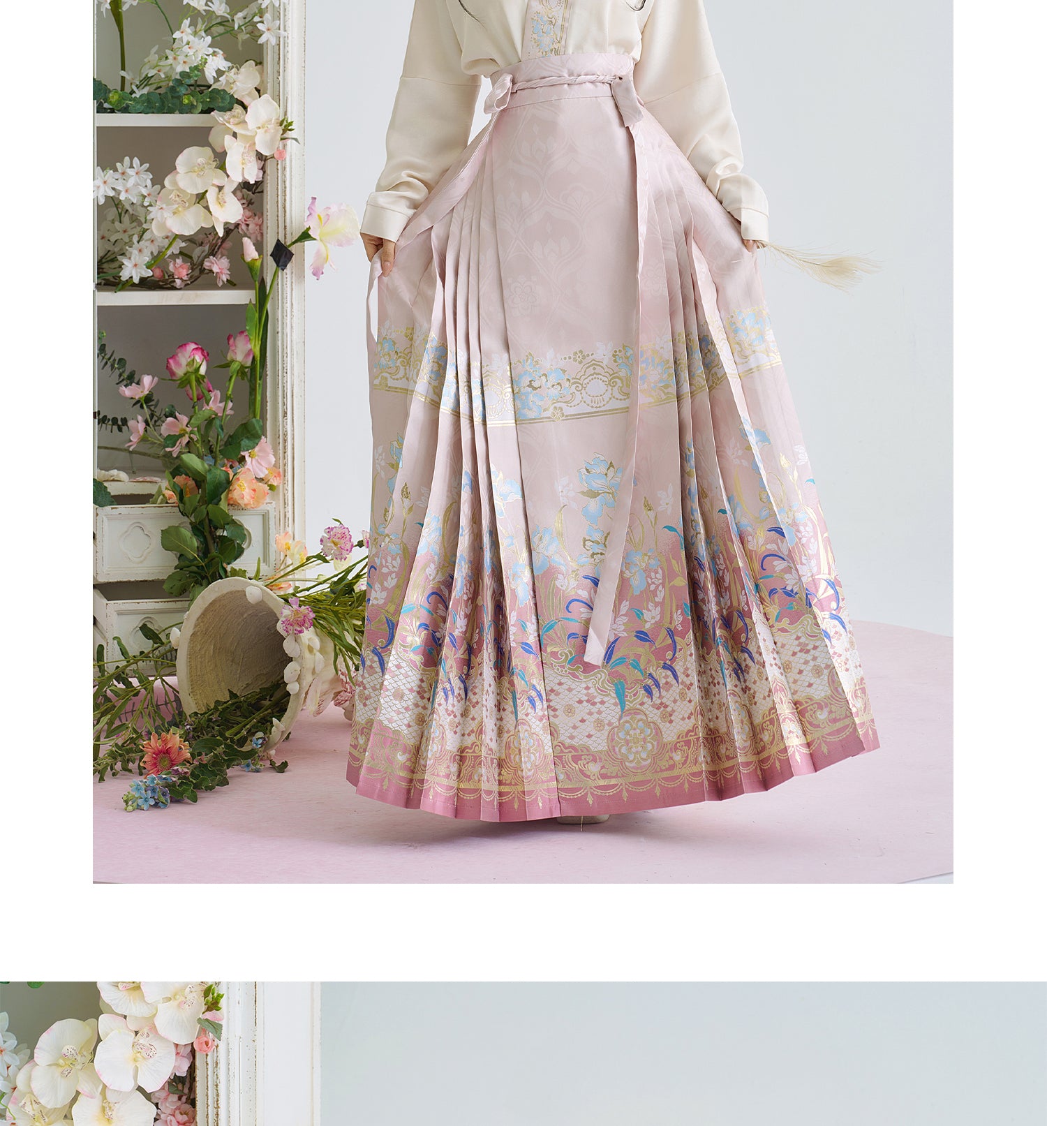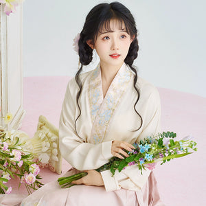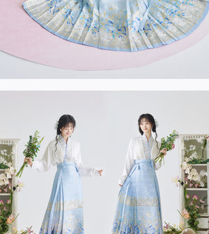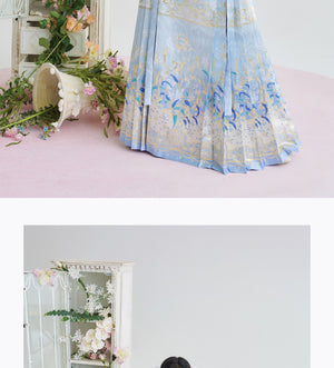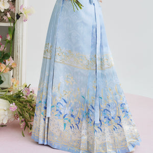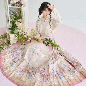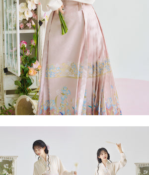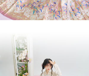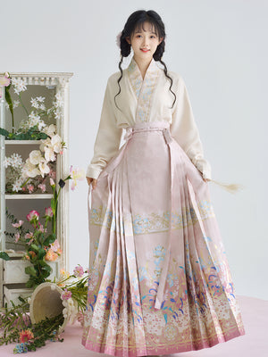 [Iris] Ming-Dynastie moderne Hanfu Frauen Pferd Rock Set Weben Gold Make-Up Blume Herbst