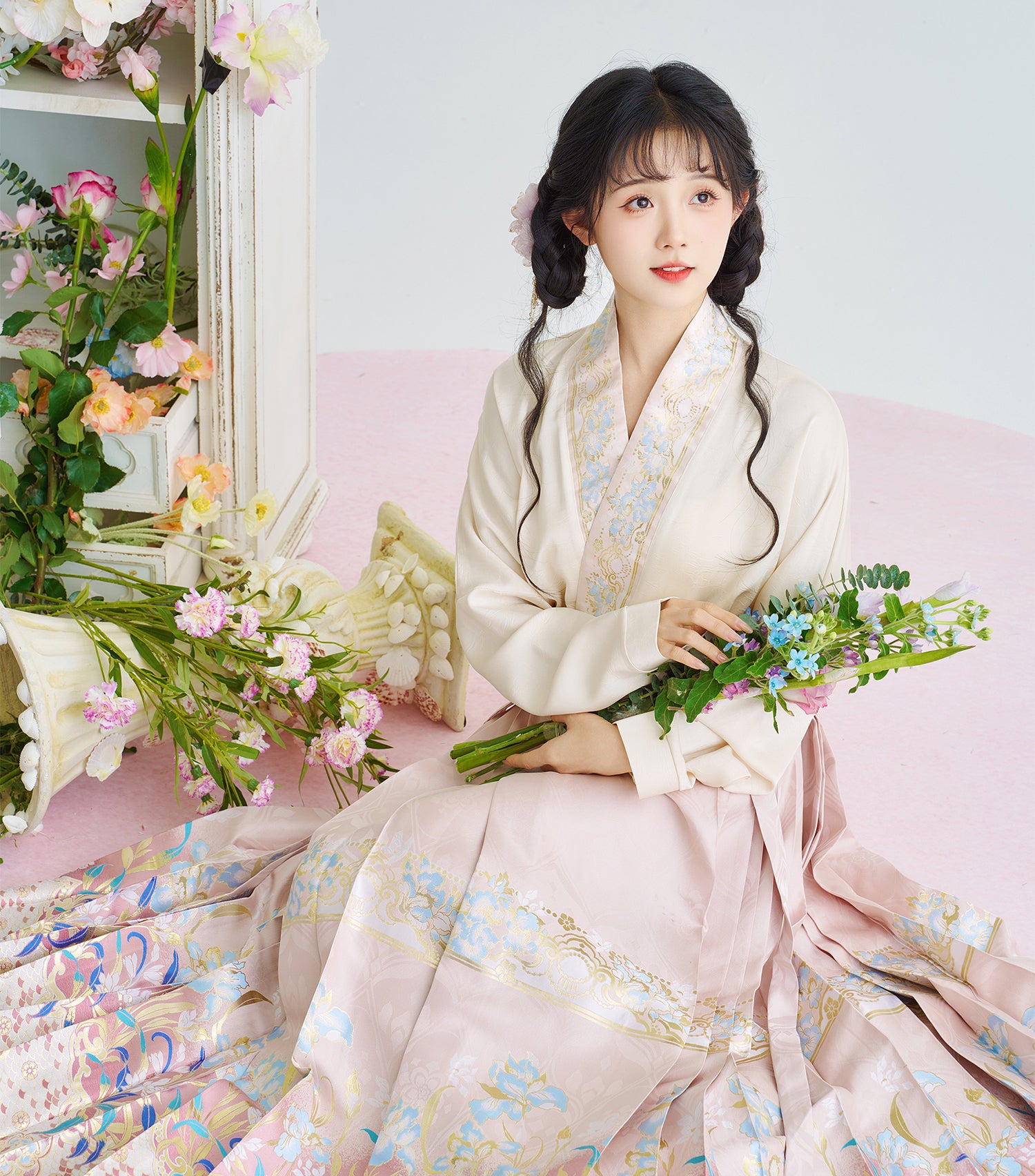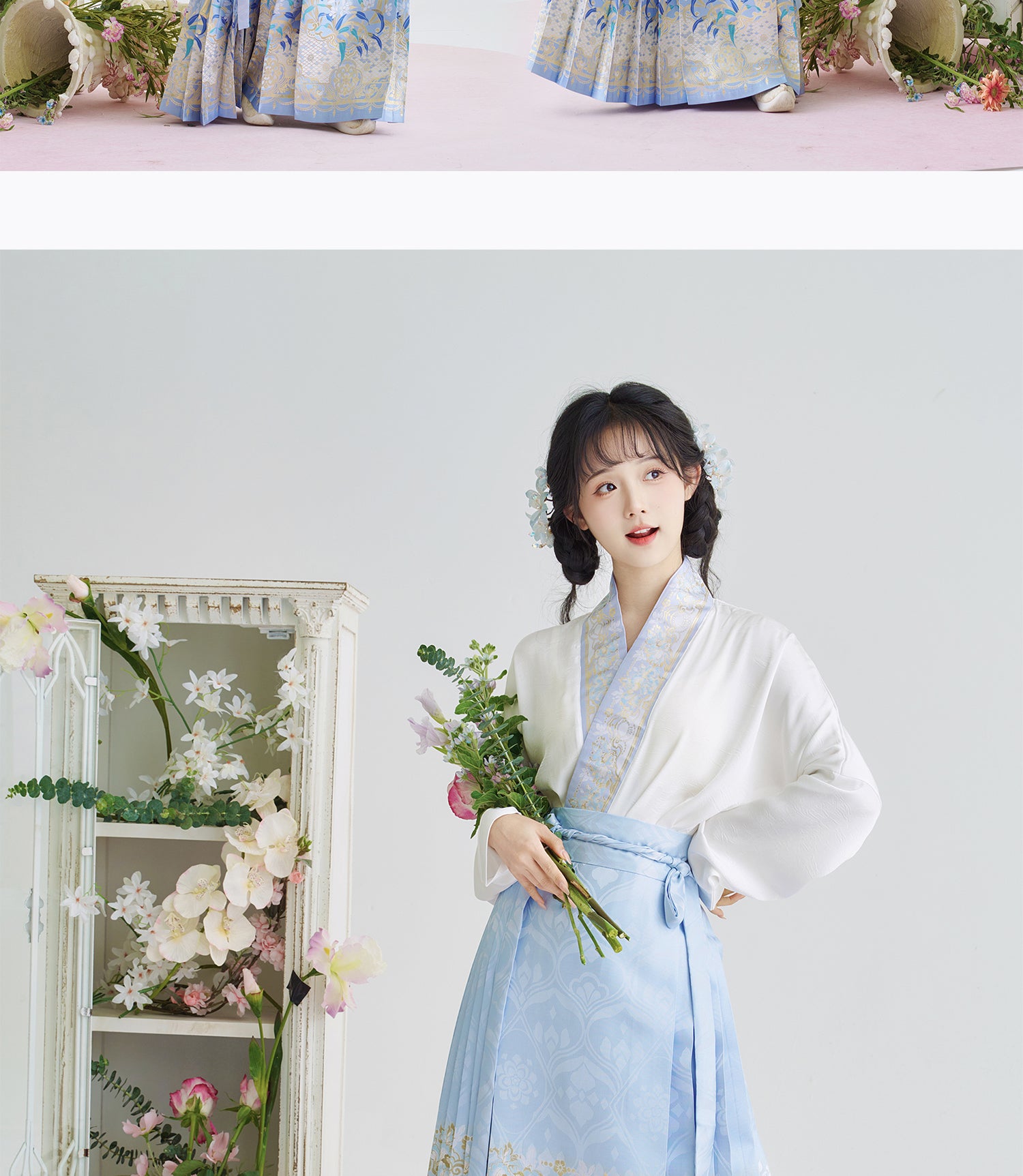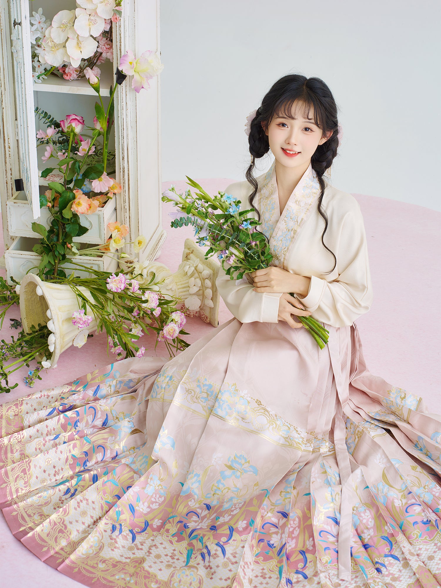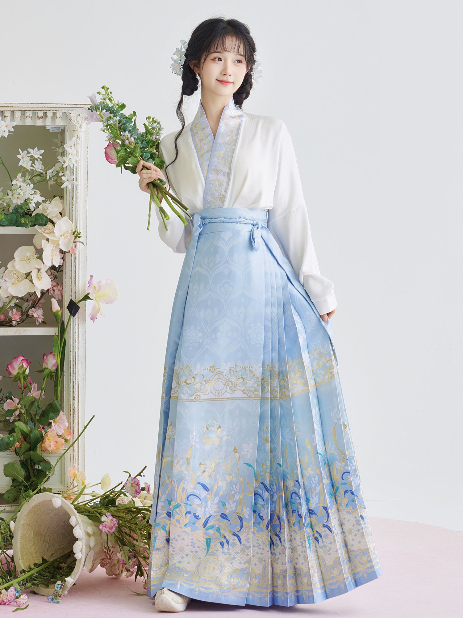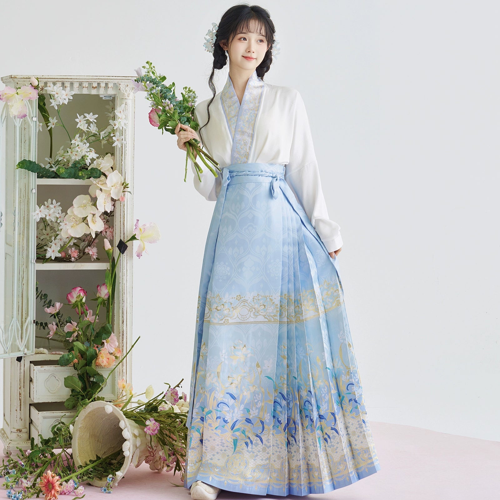 [Iris] Ming-Dynastie moderne Hanfu Frauen Pferd Rock Set Weben Gold Make-Up Blume Herbst
