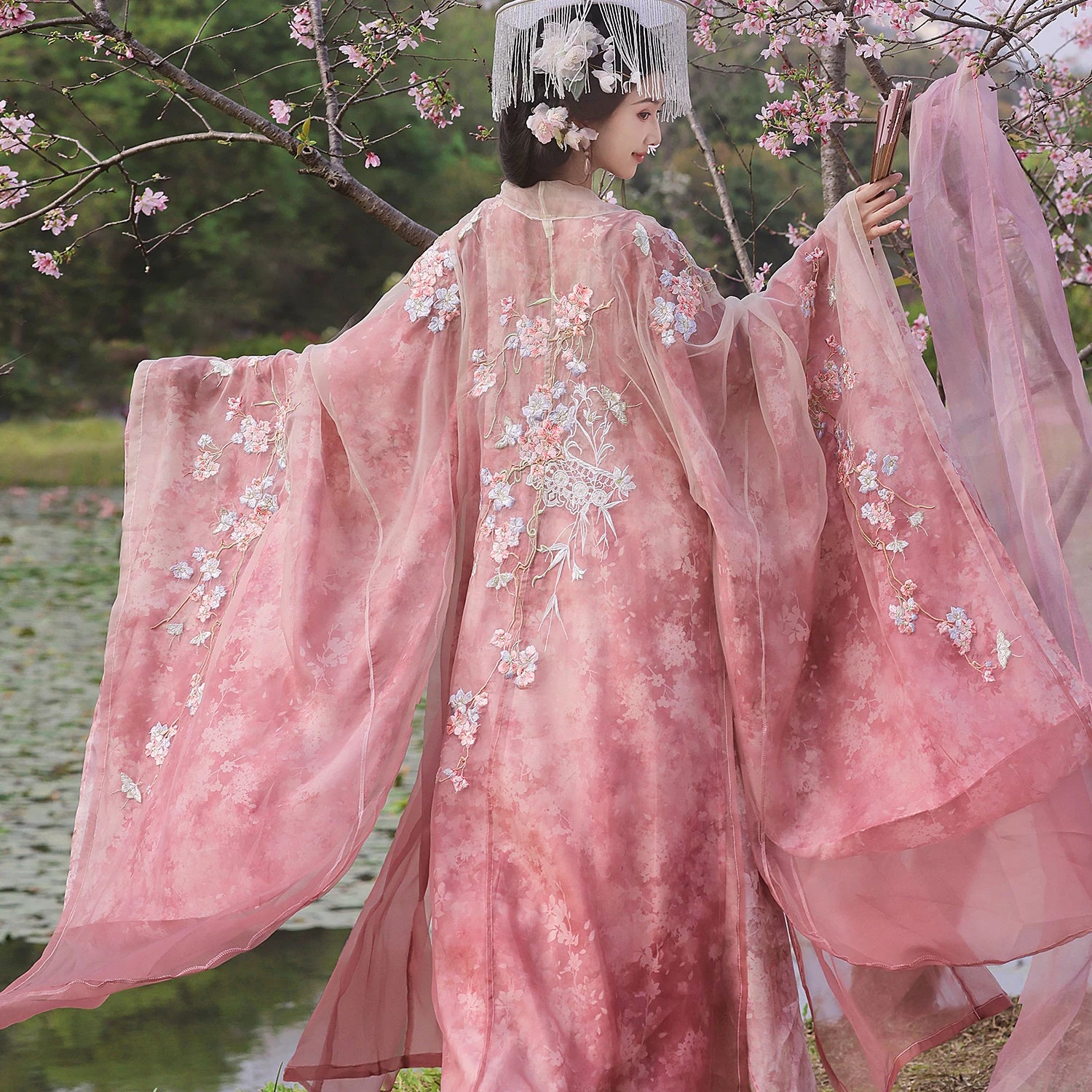 Jade Art 「Moon Cutting Cherry」 Large Sleeve Shirt Hanfu Set | Heavy Embroidery Spring & Summer Fairy Improved Hanfu