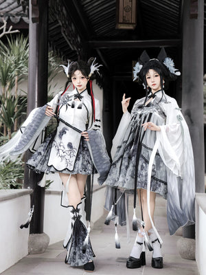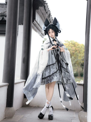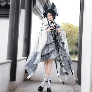 The Magpie Feather Dress Set captures the quiet elegance of classical Chinese aesthetics in a modern, wearable silhouette. Layer the cropped outerwear coat over the flowing suspender dress for a complete new Chinese style look, or wear the dress alone for a lighter, more relaxed everyday hanfu aesthetic. The delicate national style detailing adds a touch of cultural poetry to every outfit, making this set as meaningful as it is beautiful.