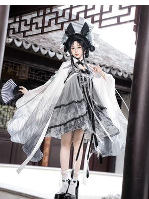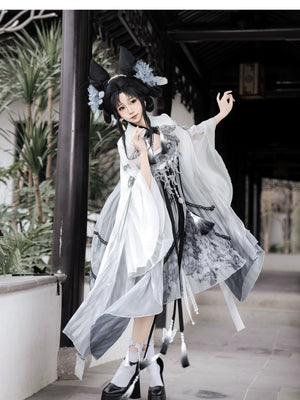 Magpie Feather New Chinese Style Dress Set | Improved Hanfu Suspender Dress with Outerwear
