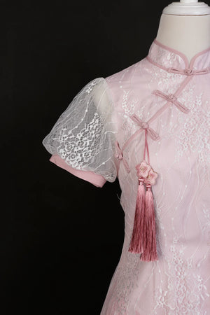 Pink Han element peach blossom crisp lace short-sleeved girl tassel sweet improved cheongsam fairy dress
