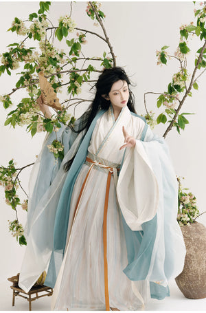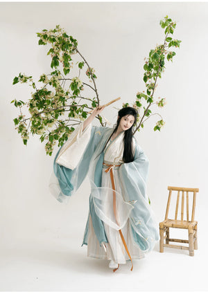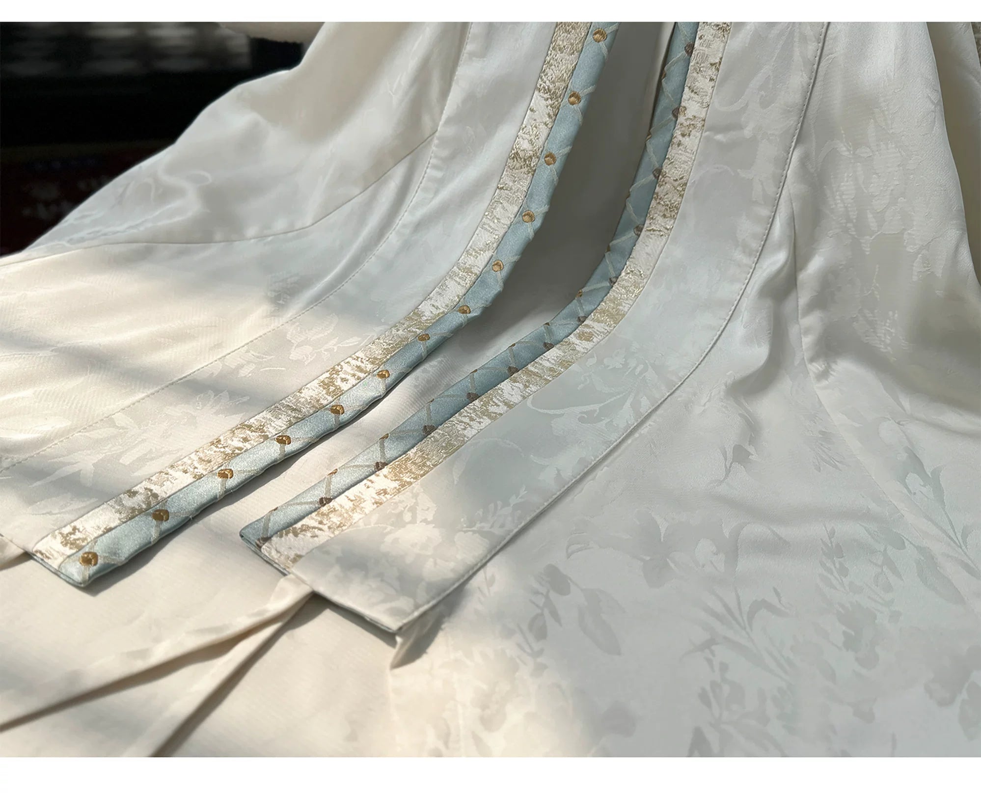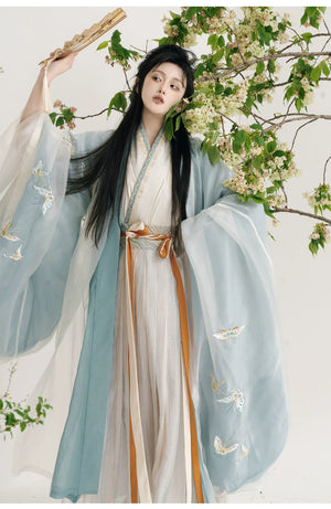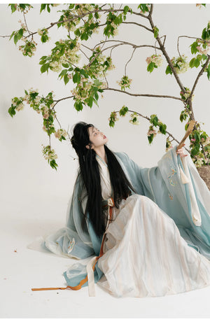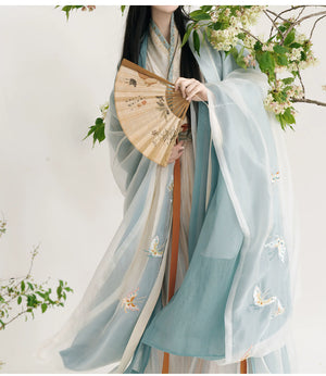 Ethereal, scholarly, and deeply rooted in the refined aesthetic of the Song Dynasty — this Yun Mengze original hanfu set captures the understated elegance that defines Song-era dress. Featuring delicate hundred-butterfly (百蝶) embroidery, flowing wide sleeves, and the characteristic layered silhouette of Song Dynasty court fashion, this set is available as individual pieces or as a complete four-piece ensemble — perfect for hanfu enthusiasts of all levels.