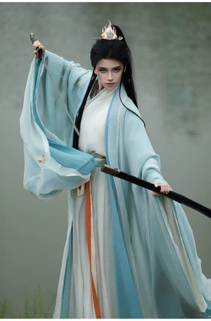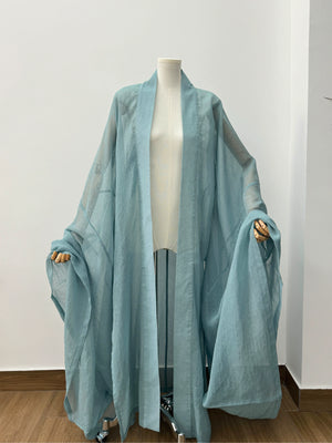 - Aqua Blue Inner Large Sleeve (水青色纯色内大袖) — $60 — S/M/L/XL — 100% polyester bamboo-leaf gauze (竹叶纱), slightly sheer. Solid inner robe worn beneath the outer sleeve.