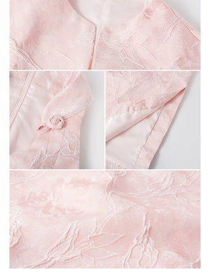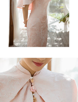 - Two-piece shawl set: Includes both the pink cheongsam and the matching shawl.