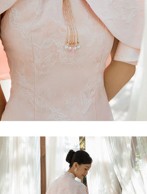 Pink Cheongsam | New Chinese Style Shawl Two-Piece Set | Engagement & Wedding Morning Robe
