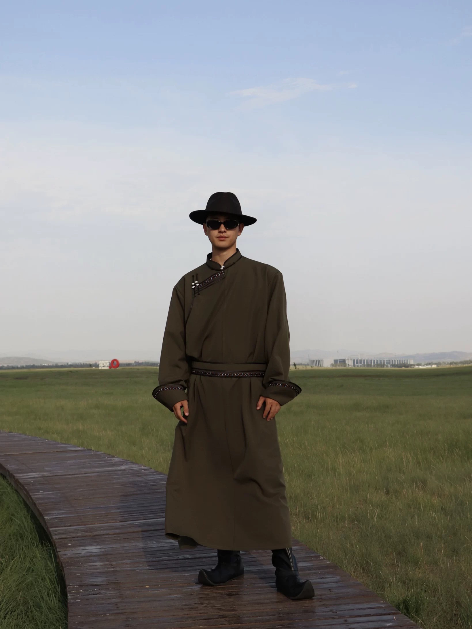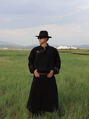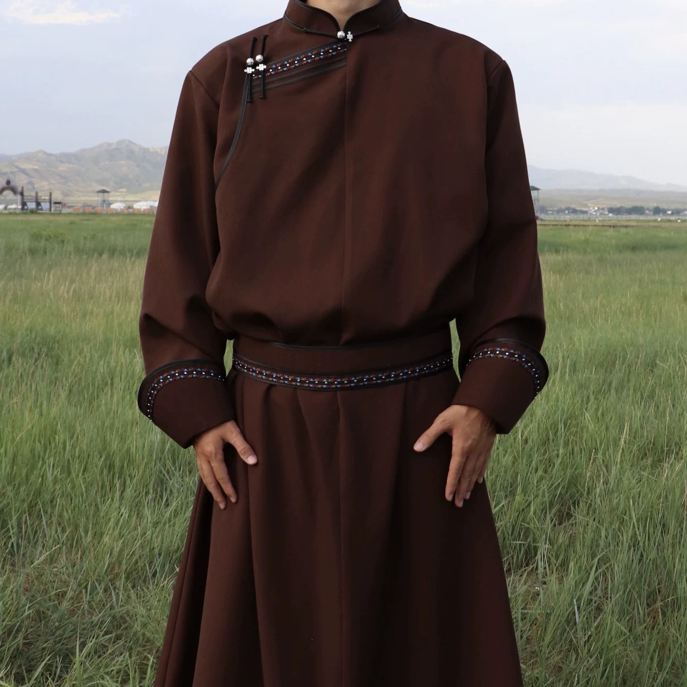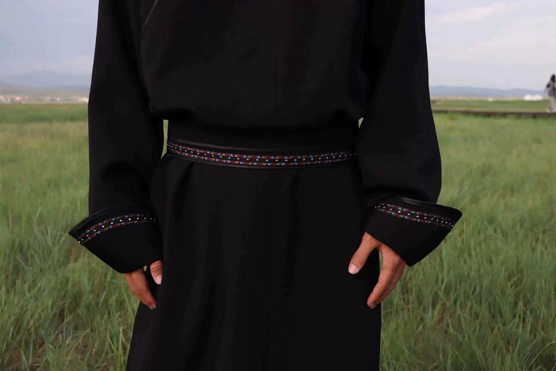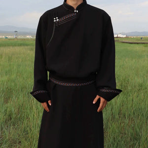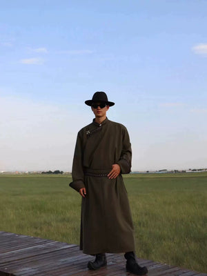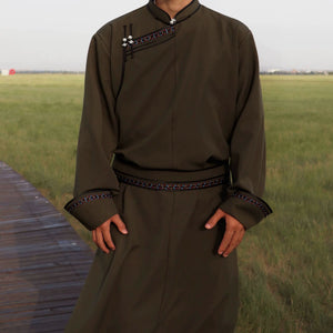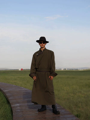 Premium Traditional Mongolian Robe for Men — Hand-Fastened, Solid Twill Design