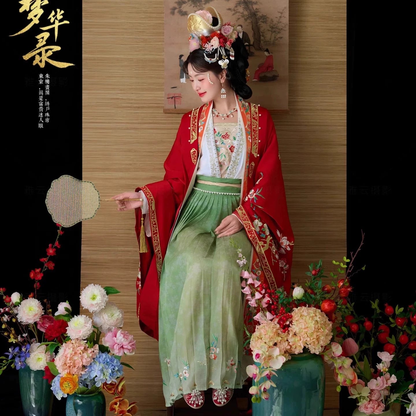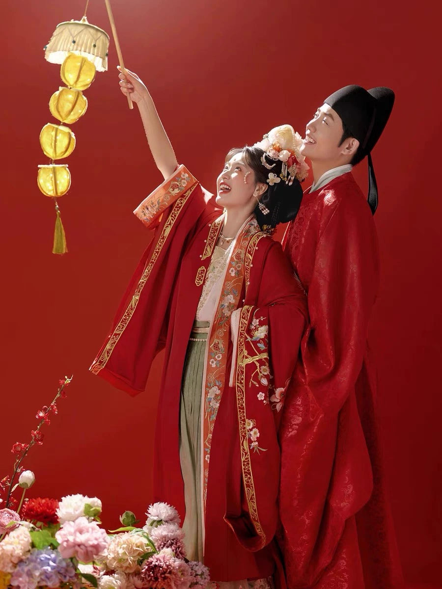 Red Song Dynasty Hanfu Chinese embroidery wedding clothes, happy marriage couple suit