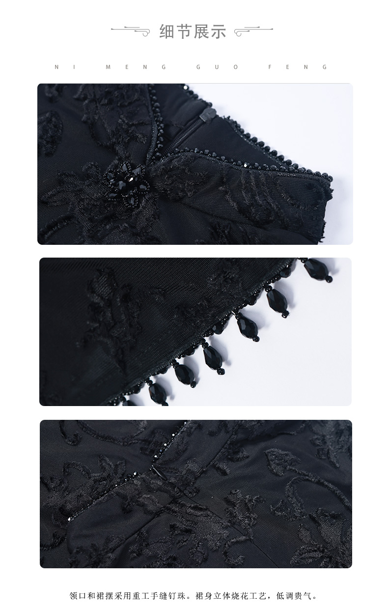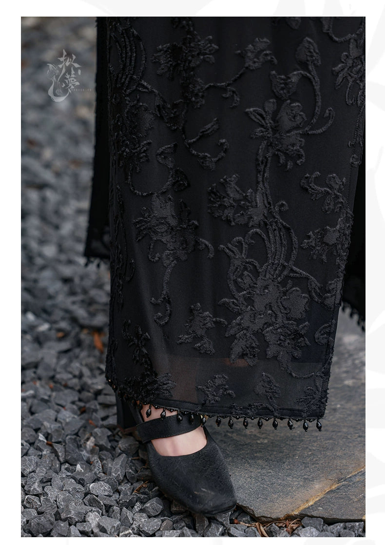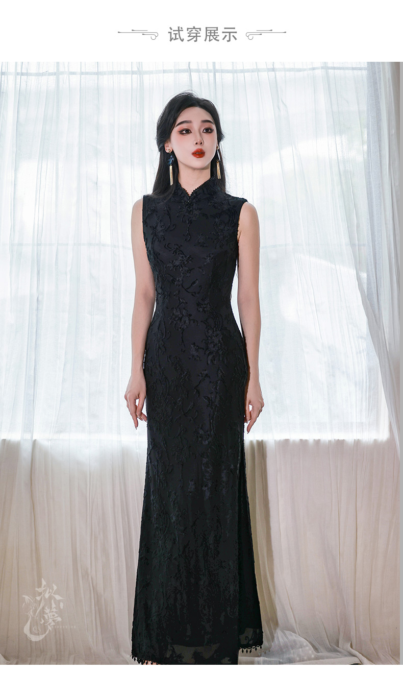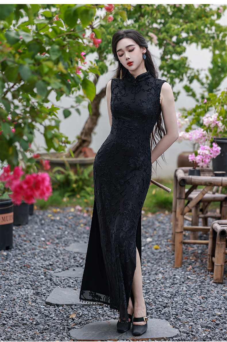 Silent Fragrance – Velvet Beaded Sleeveless Floor-Length Qipao with New Chinese Style Blazer