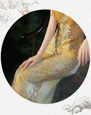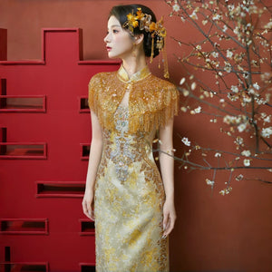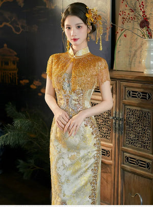 Gold Cheongsam Bridal Gown| Suzhou Embroidery | Dragon Phoenix Jacket | Cheongsam Wedding Dress