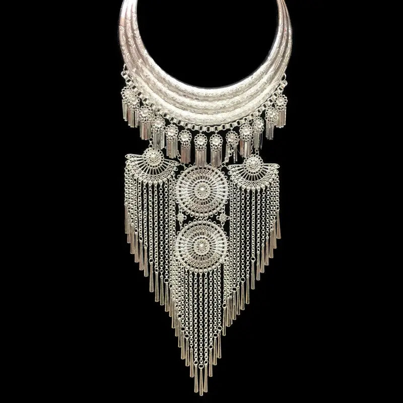 Yunnan ethnic style exaggerated large collar Miao pendant necklace Miao silver jewelry performance