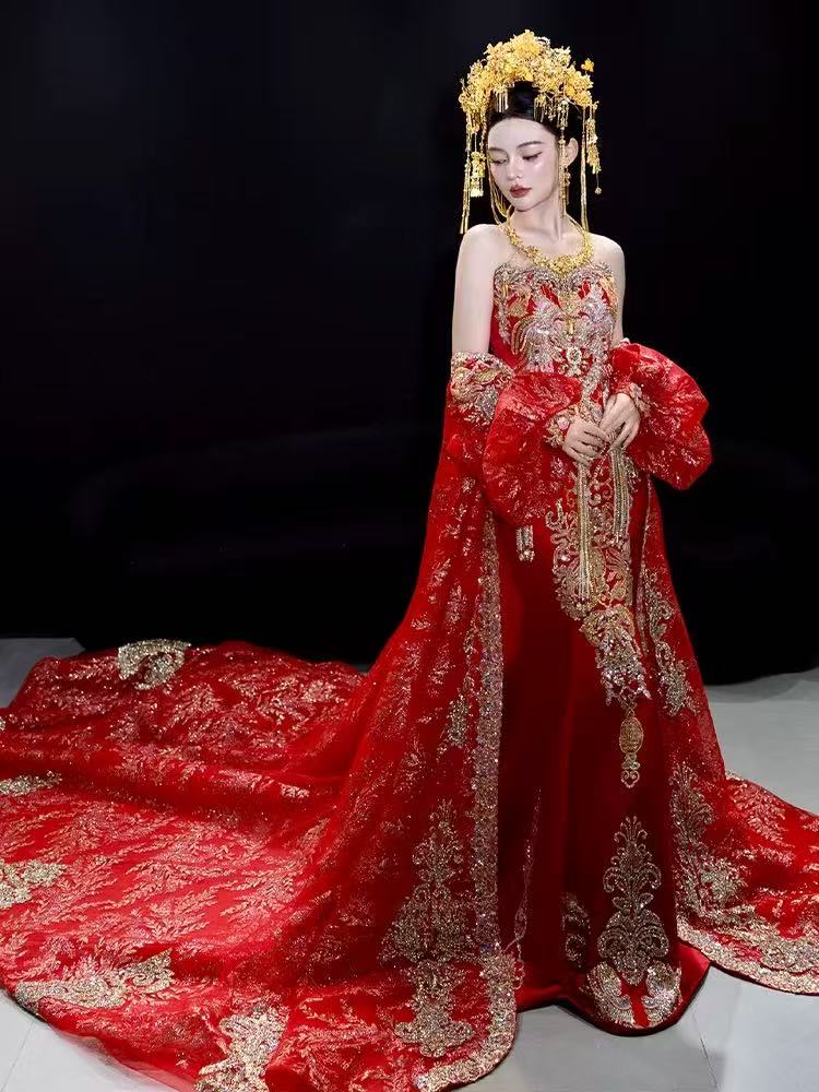 Product Name: New Chinese Strapless Wedding Dress 2025