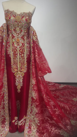 Every detail of this dress showcases heavy industry craftsmanship - from intricate beading and embellishments to precise construction techniques. This is not mass-produced fashion; it's artisanal bridal couture.