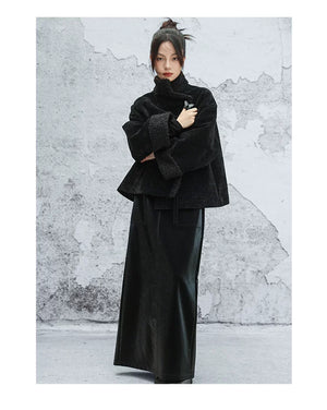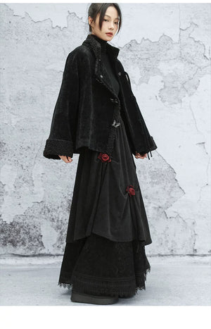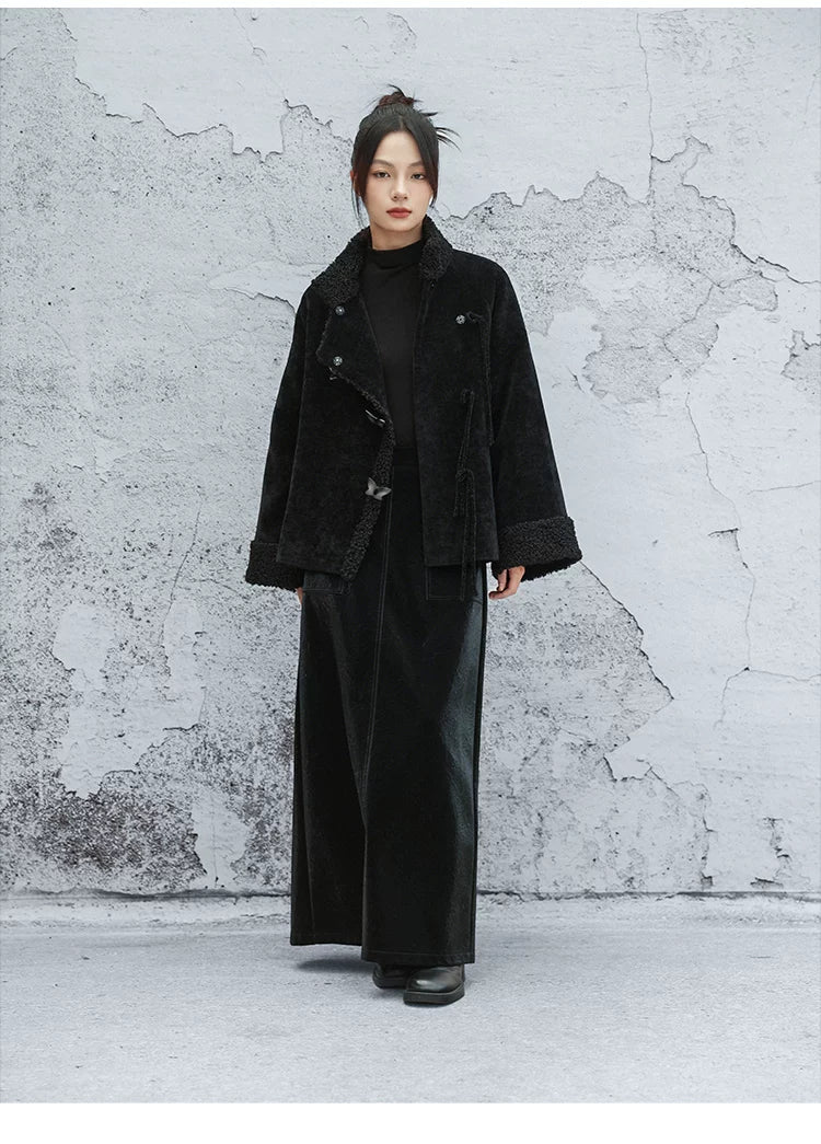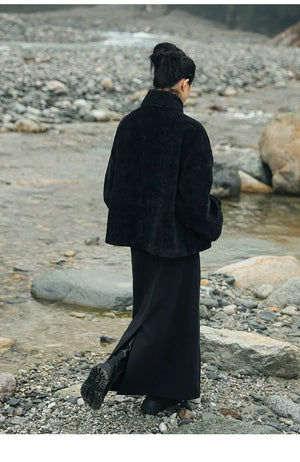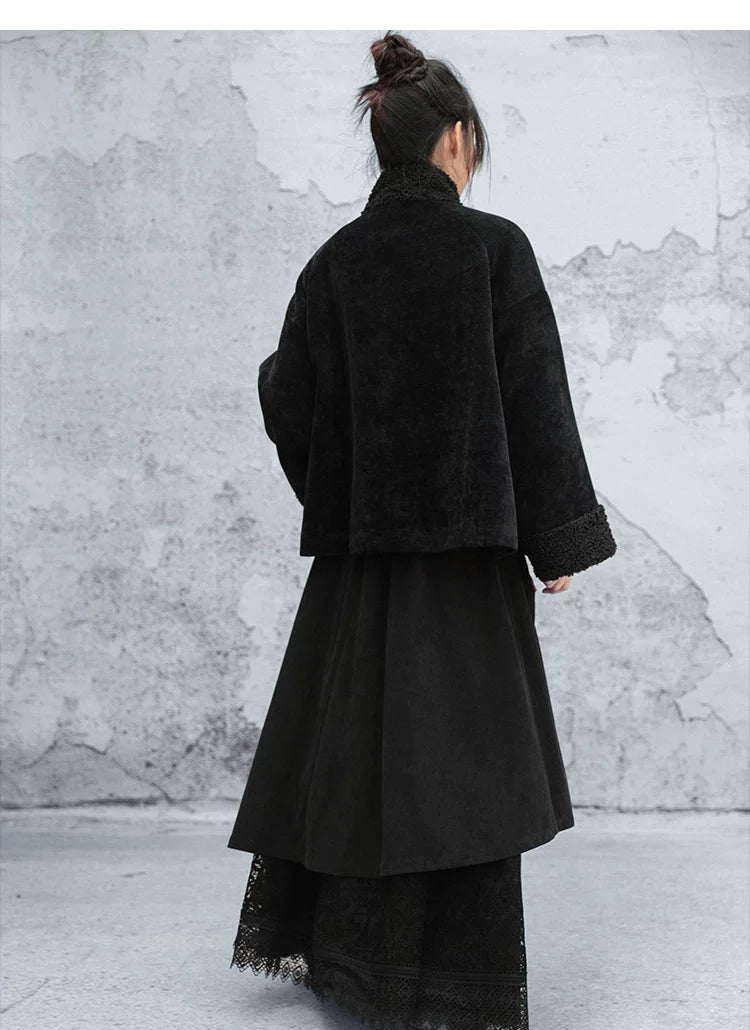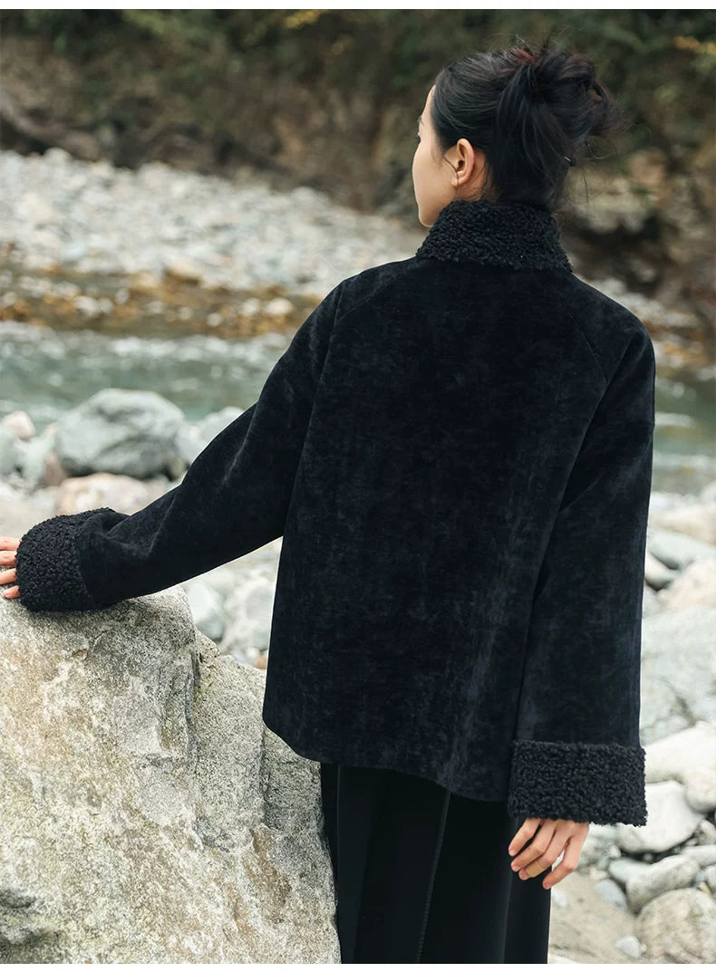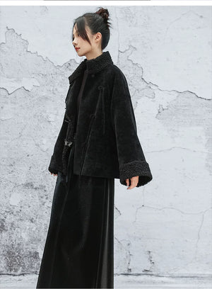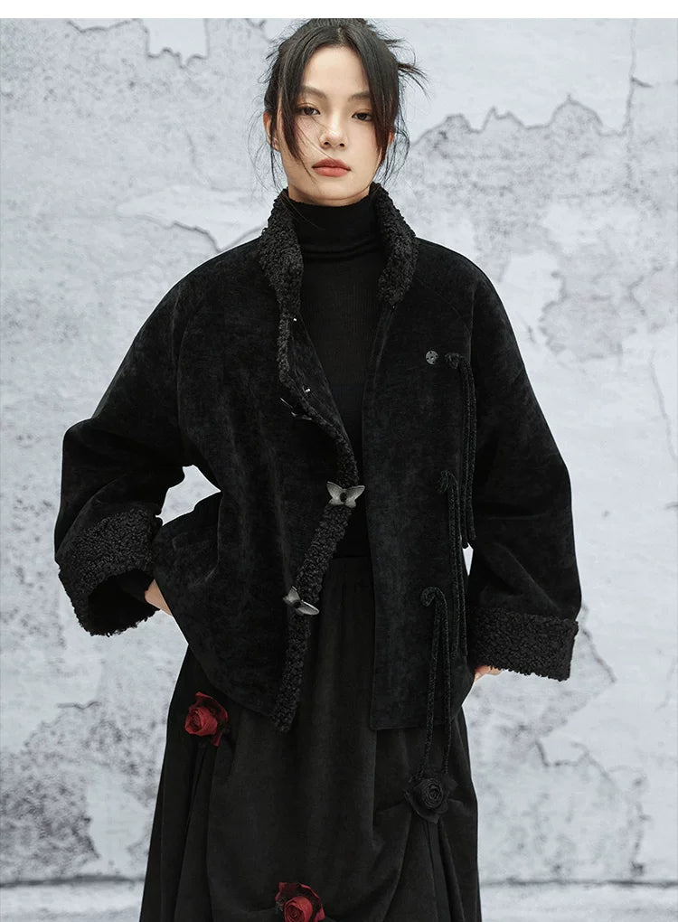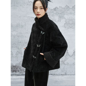 Black plush jacket women's 2025 autumn and winter new Chinese cotton clothes loose chenille thick top