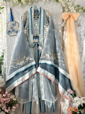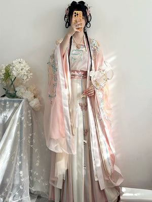 Butterfly Love Hanfu Set – Plus Size Song-Style Qiyao Robe with Wide Sleeves, Elegant Slimming Outfit for Sprin