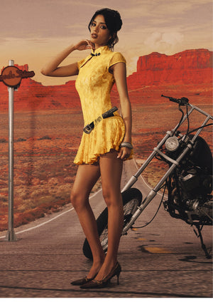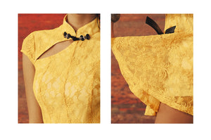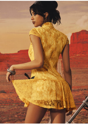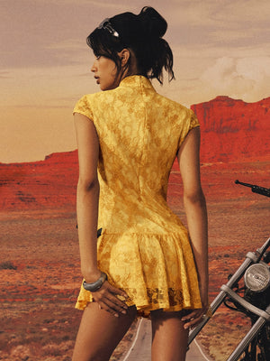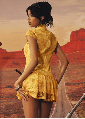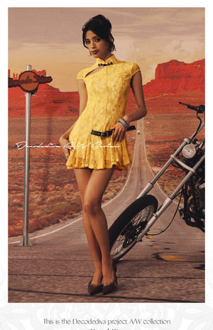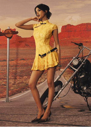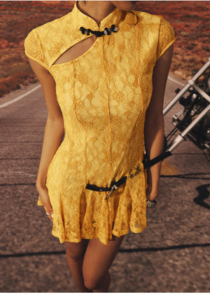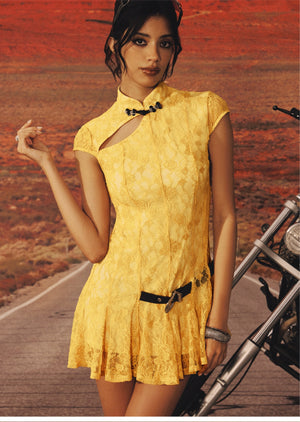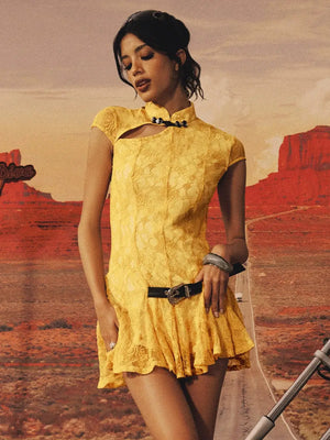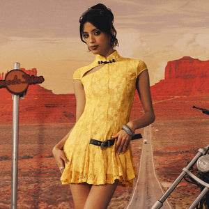 [California Sunset] Chinese Style Lace Cheongsam Dress Dress Rebellious Fake Belt Short Dress