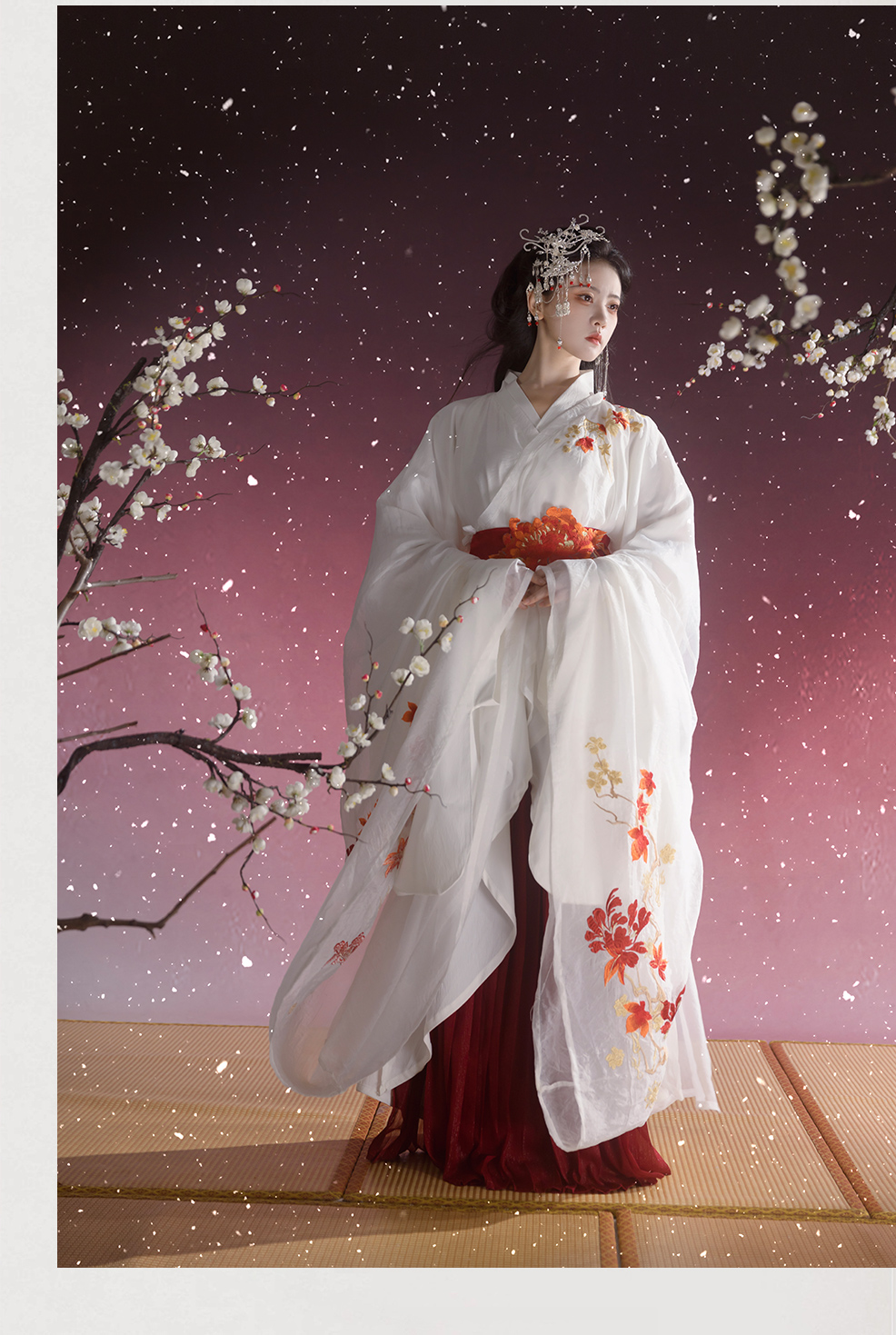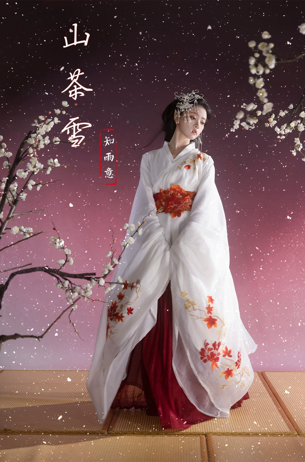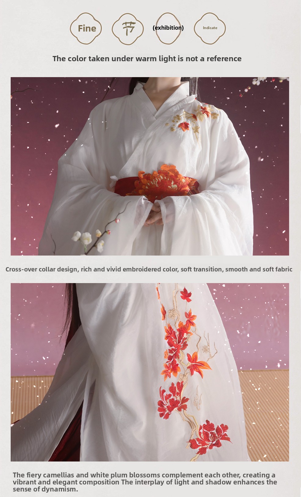 “Camellia Snow” White Battle-Robe Set | Original Embroidered Hanfu Inspired by the Warring States
