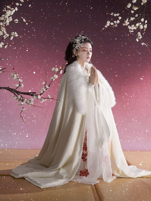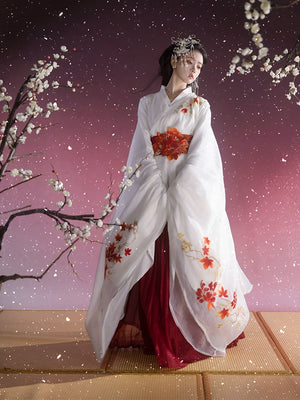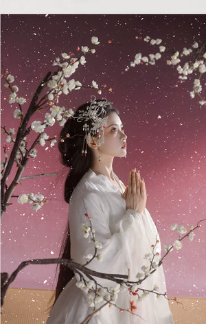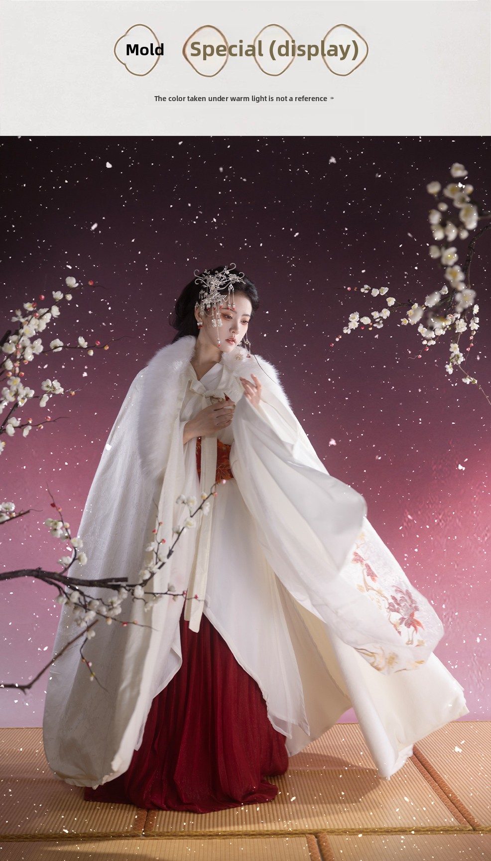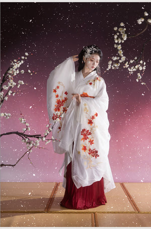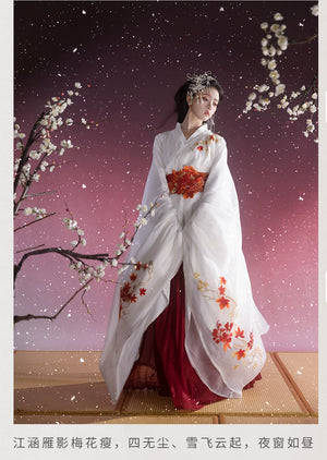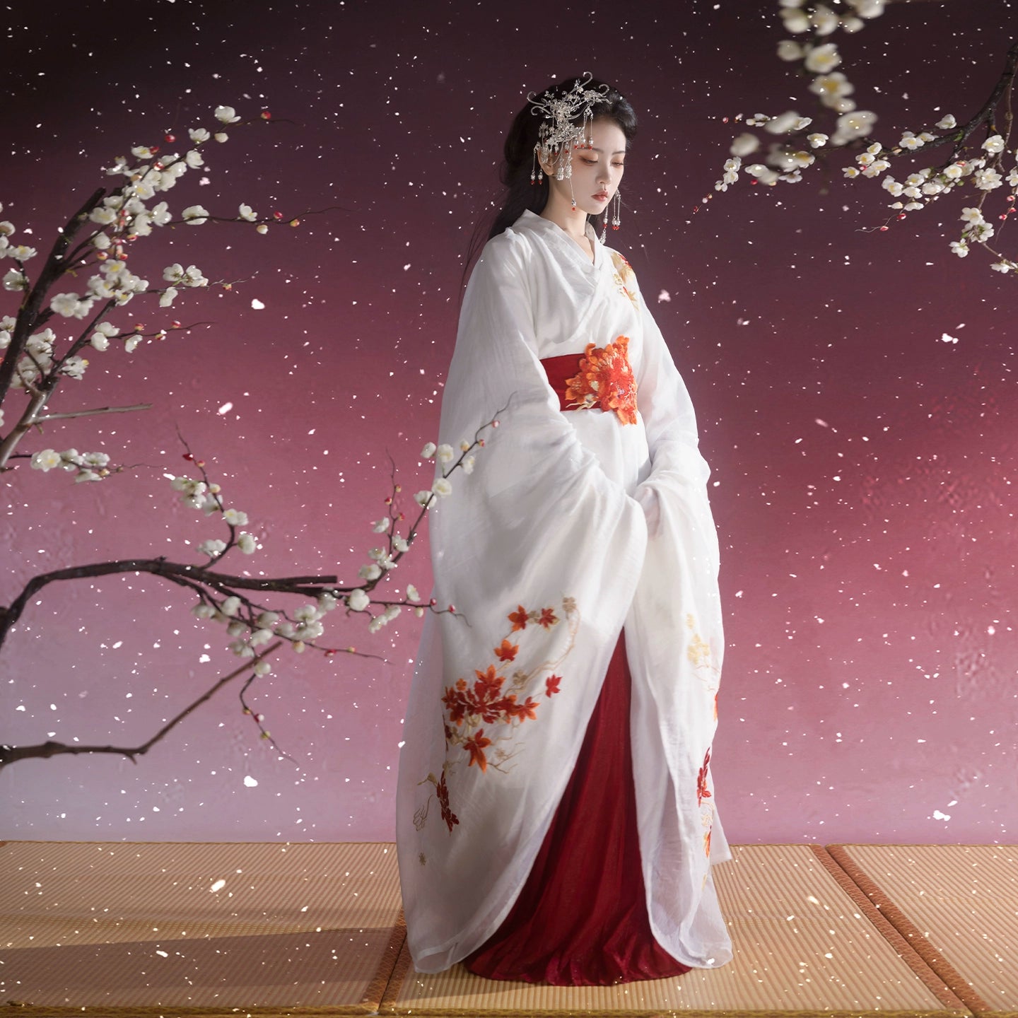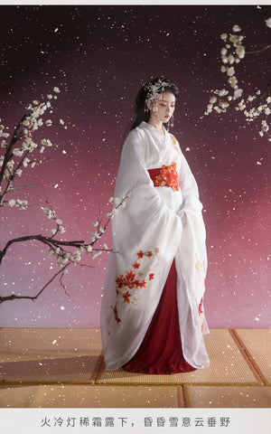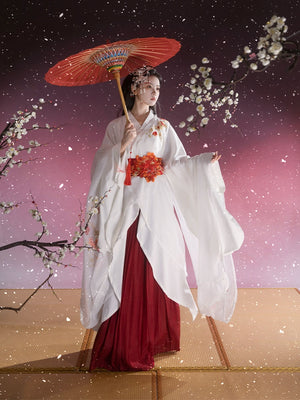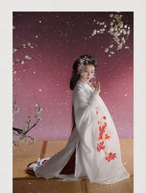 “Camellia Snow” White Battle-Robe Set | Original Embroidered Hanfu Inspired by the Warring States