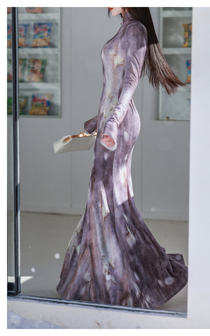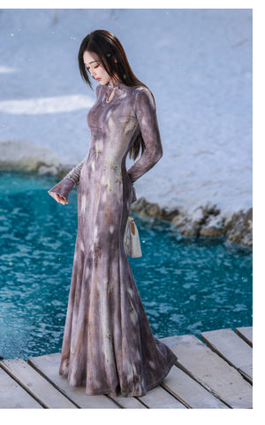 Mermaid Cheongsam Dress - Lotus Fish Tail Knitted Long Dress