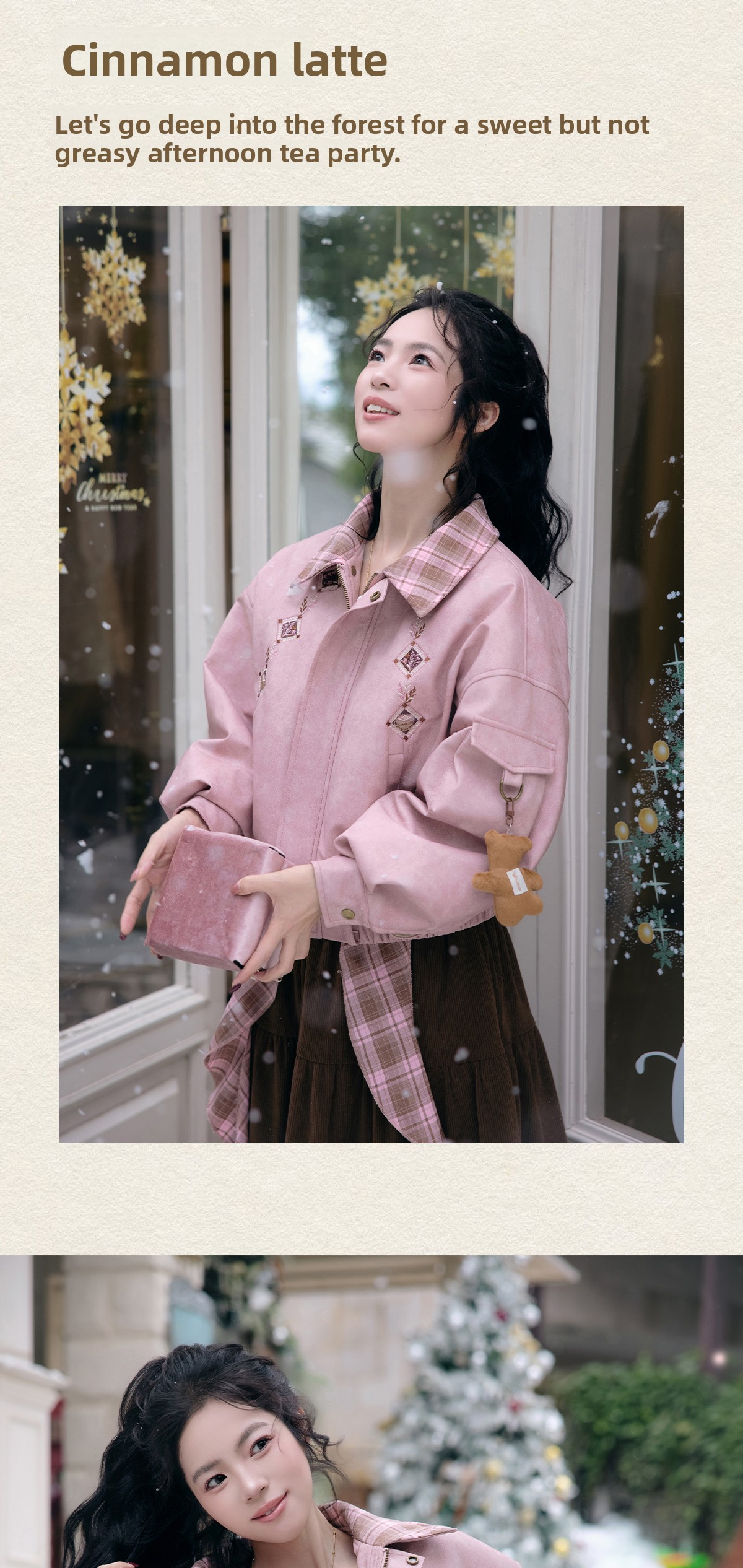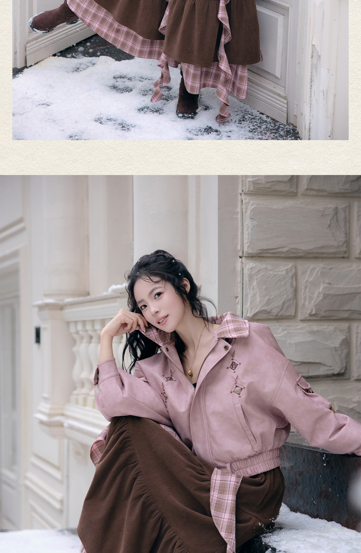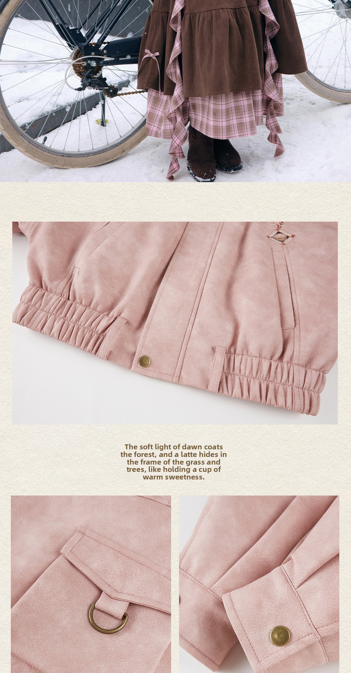 “Cinnamon Latte” – Winter Down Jacket & Skirt Set | Faux Leather Finish