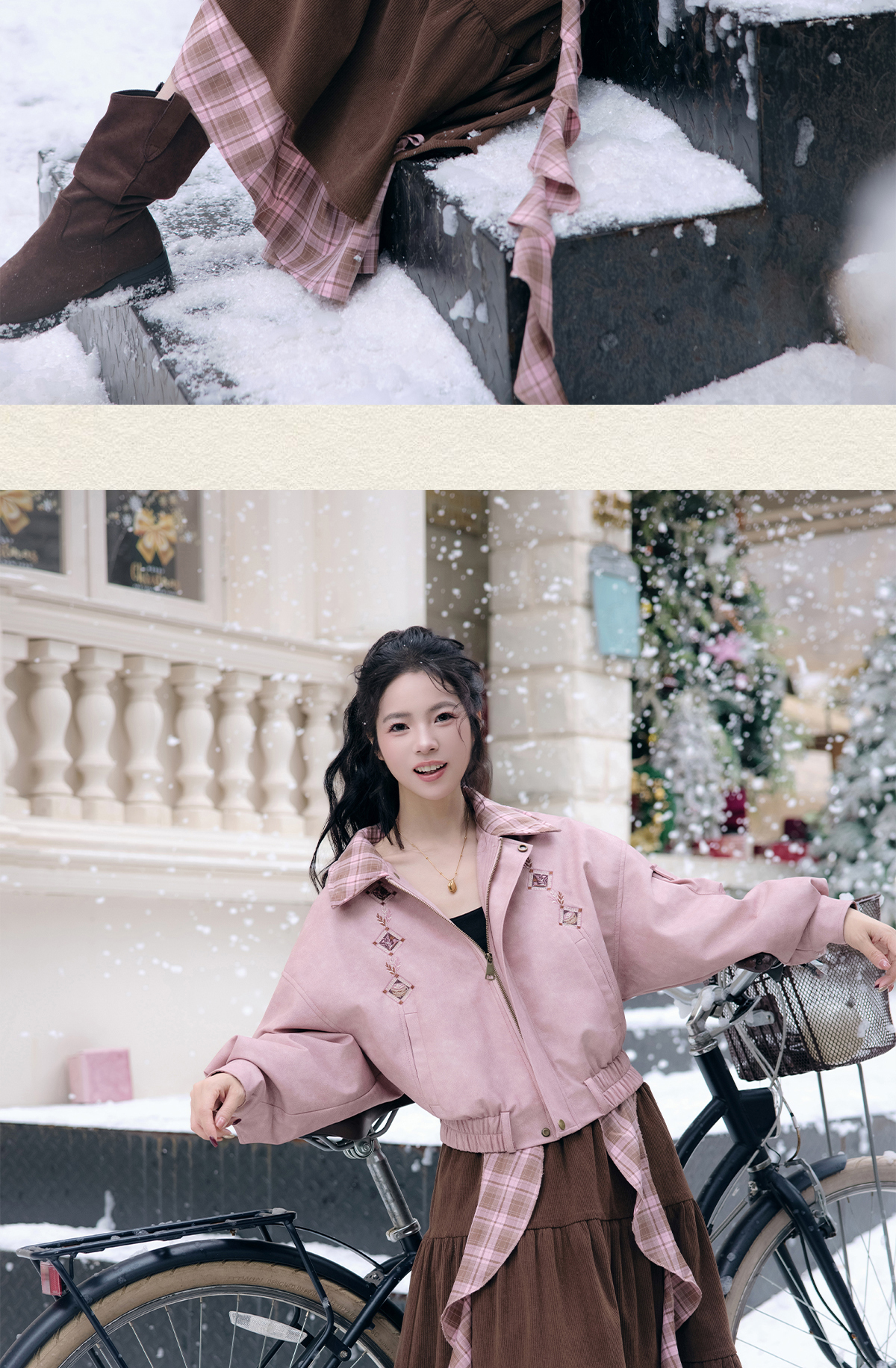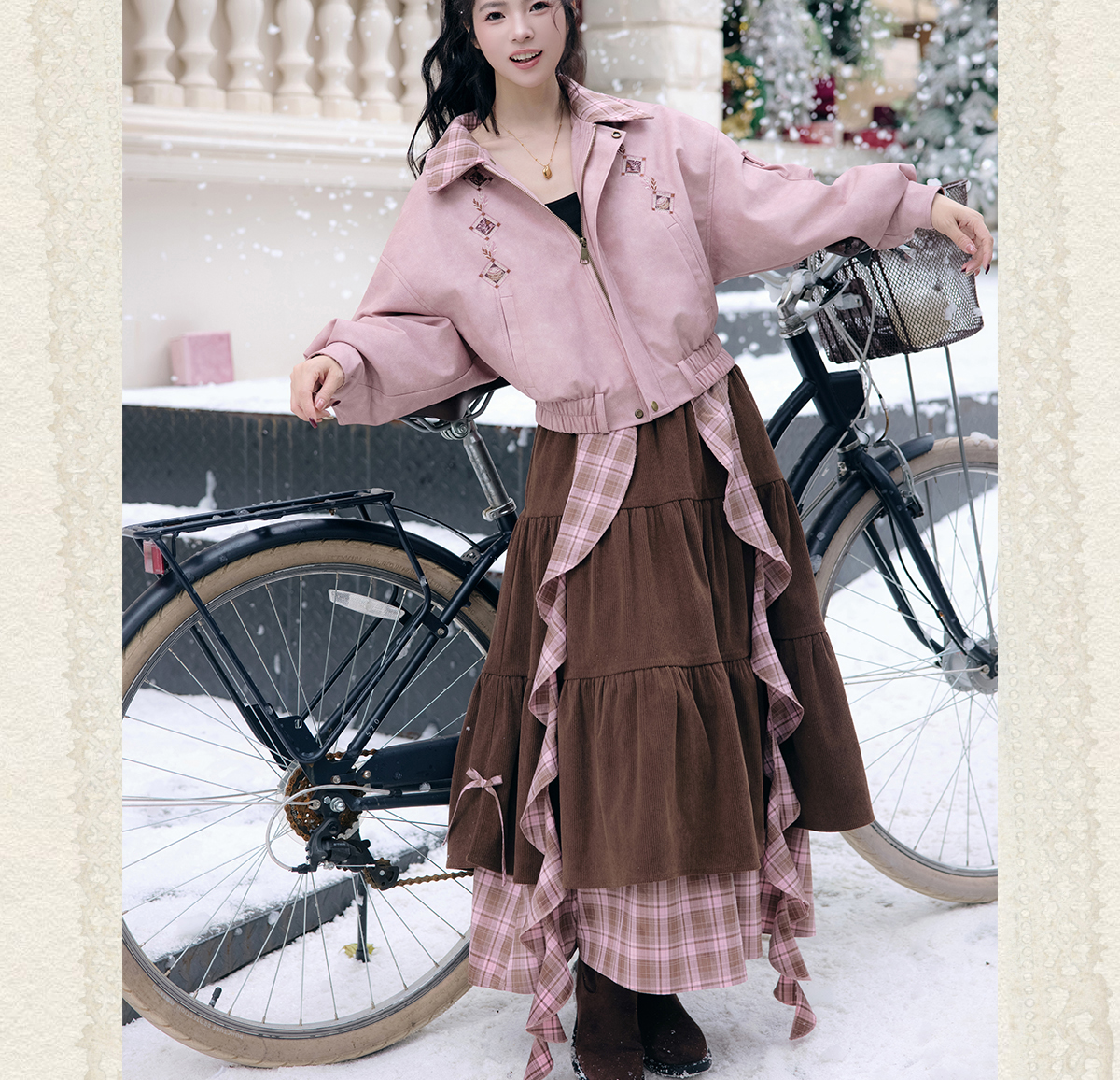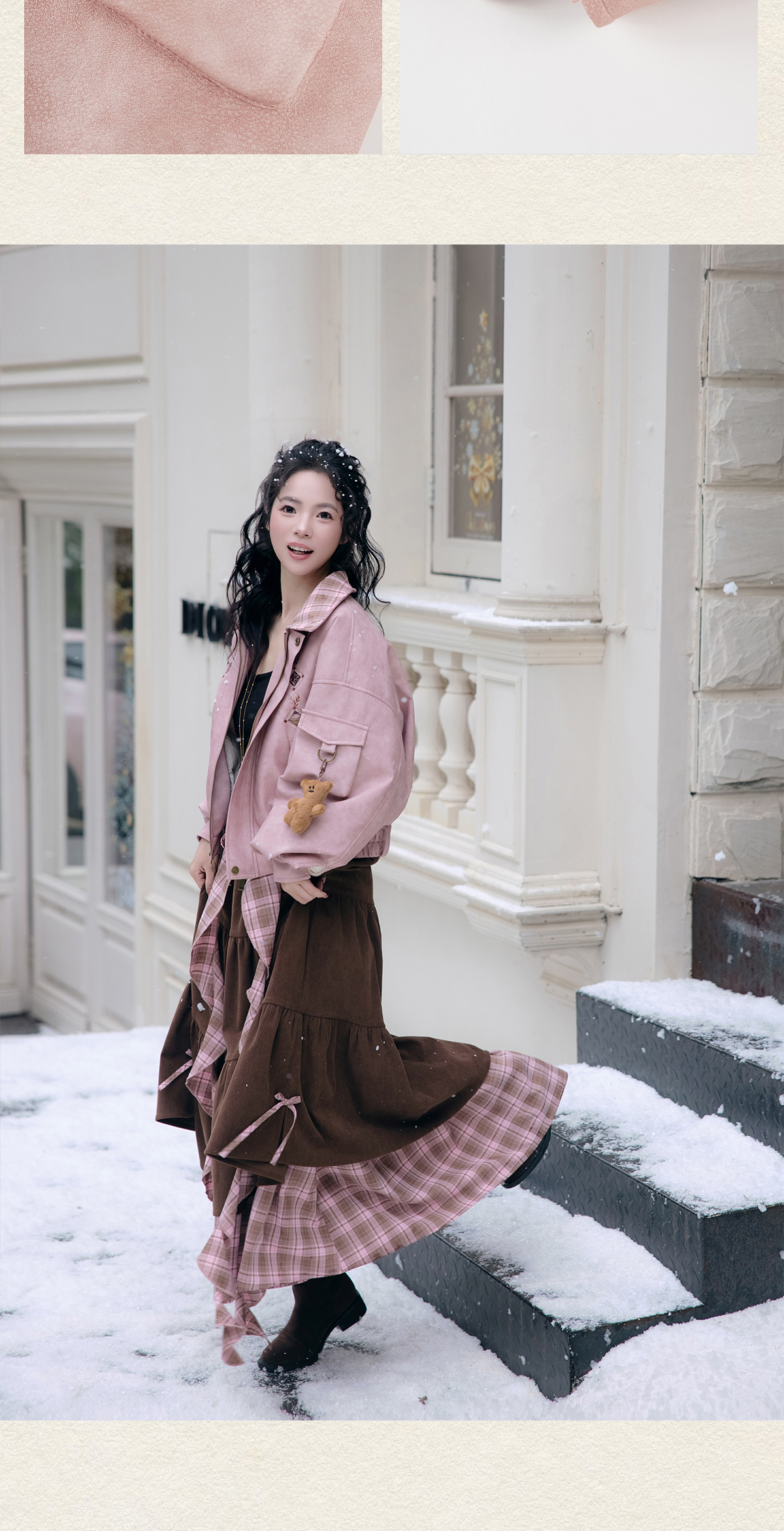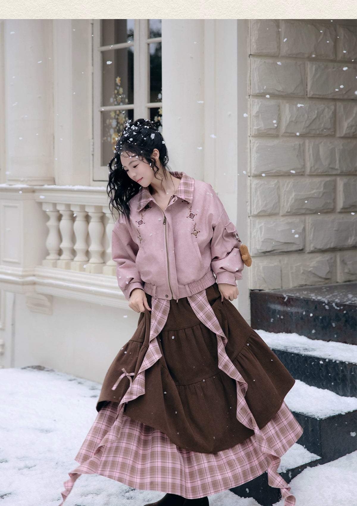 “Cinnamon Latte” – Winter Down Jacket & Skirt Set | Faux Leather Finish