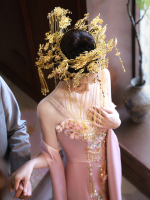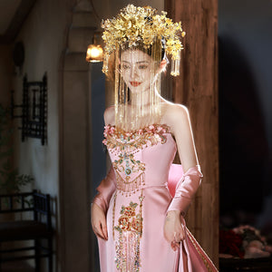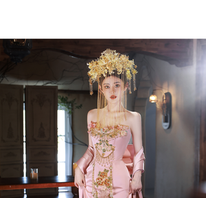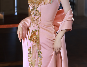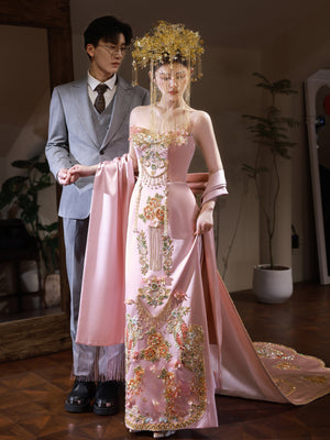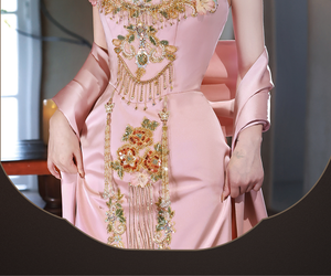Jade Pool – Original New Chinese Style Evening Gown for Engagement & Elegant Toast Ceremonies
