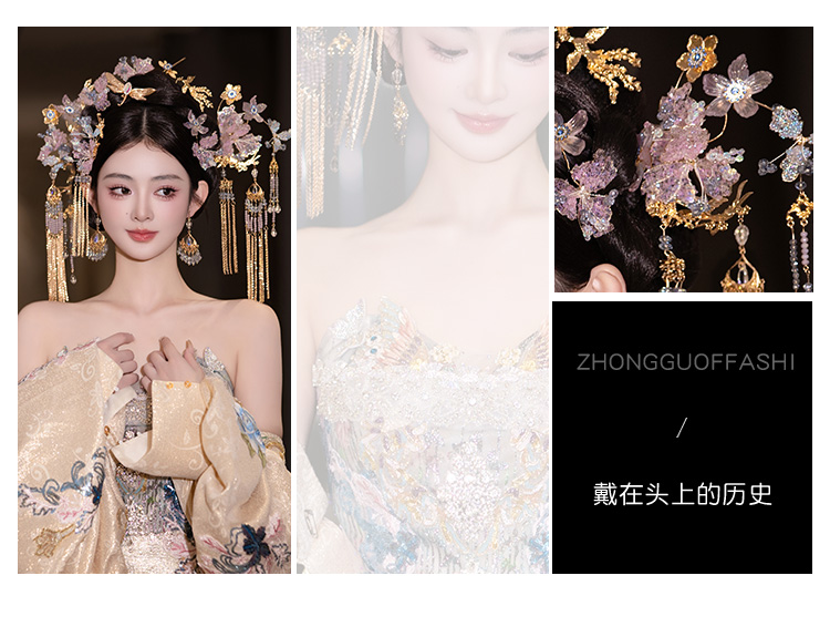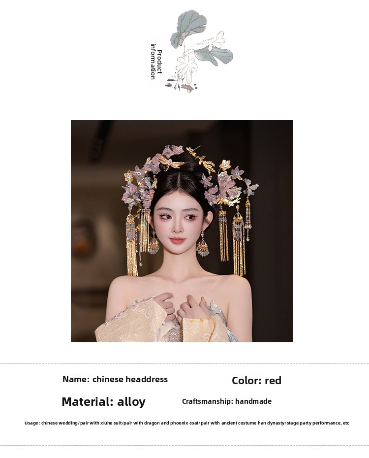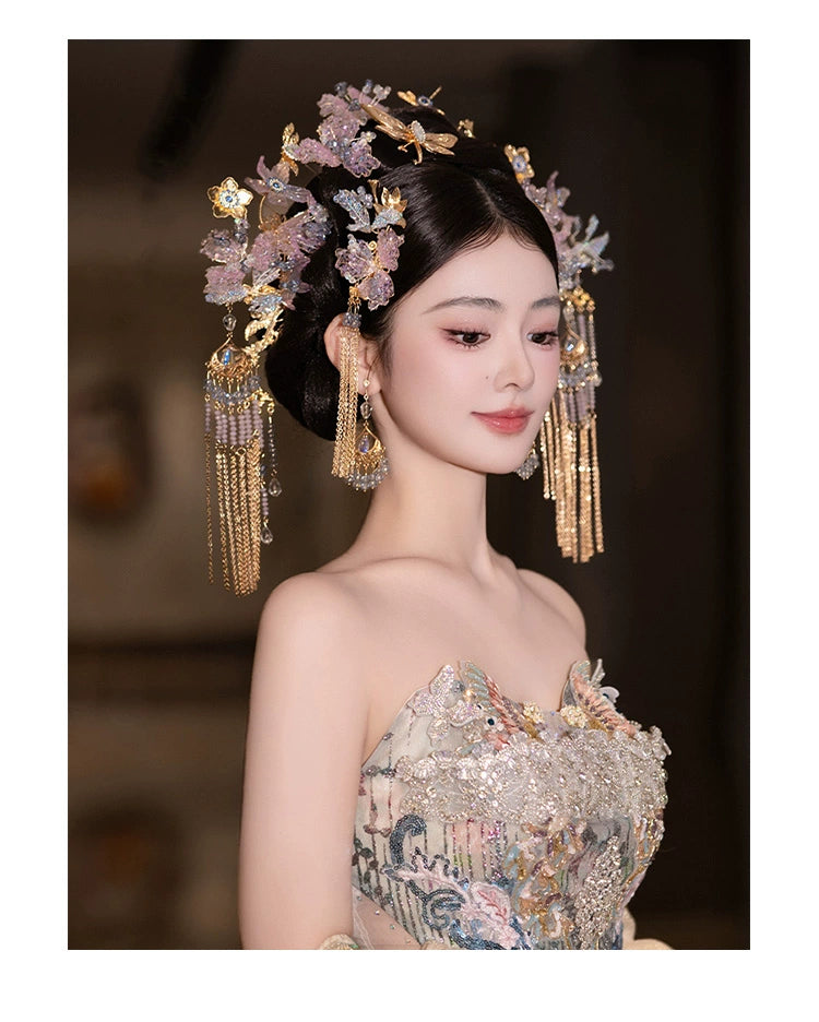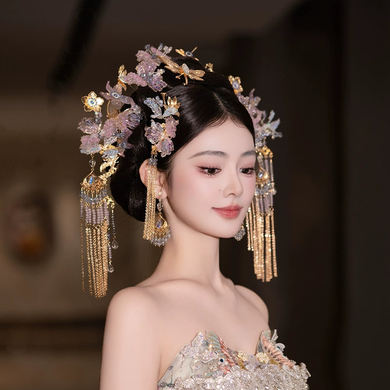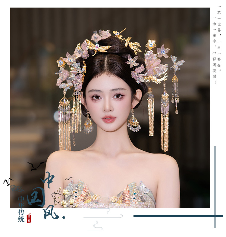 Light Toned Chinese Bridal Hairpin Set – Elegant Floral Headpiece for Hanfu, Qipao