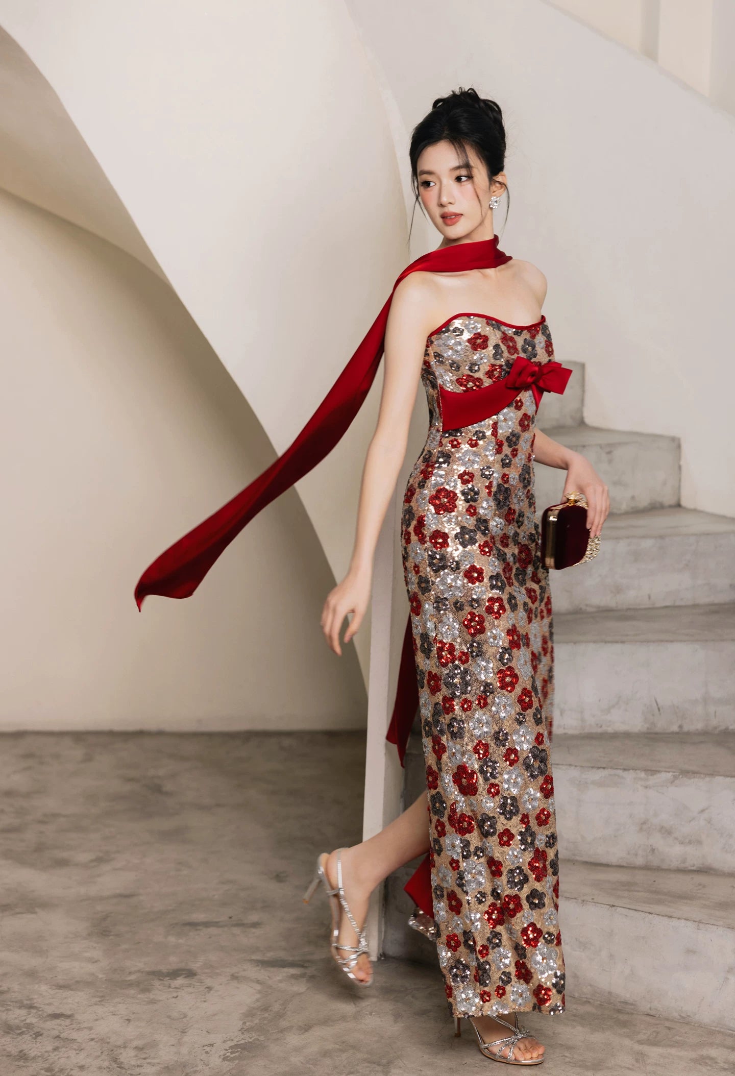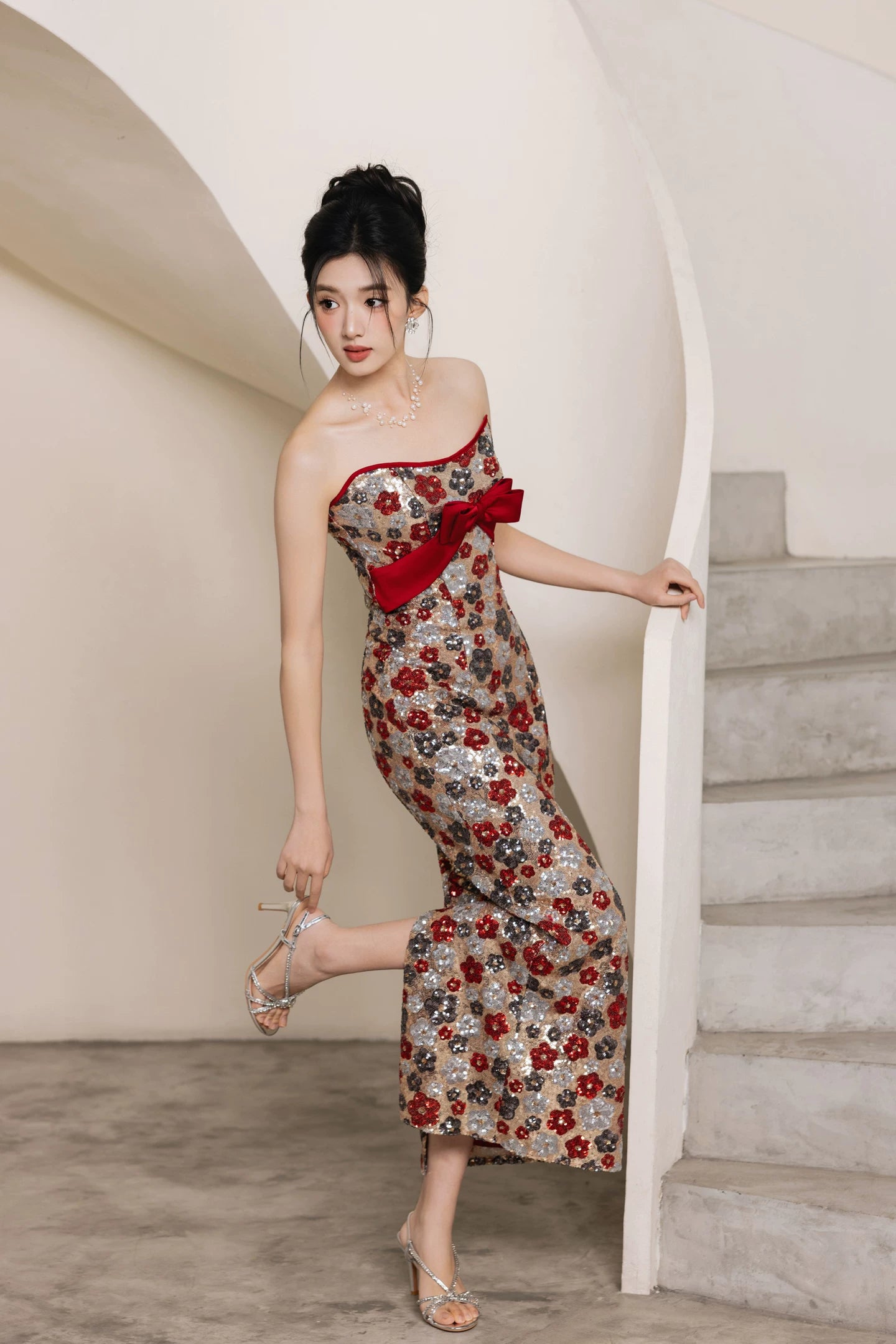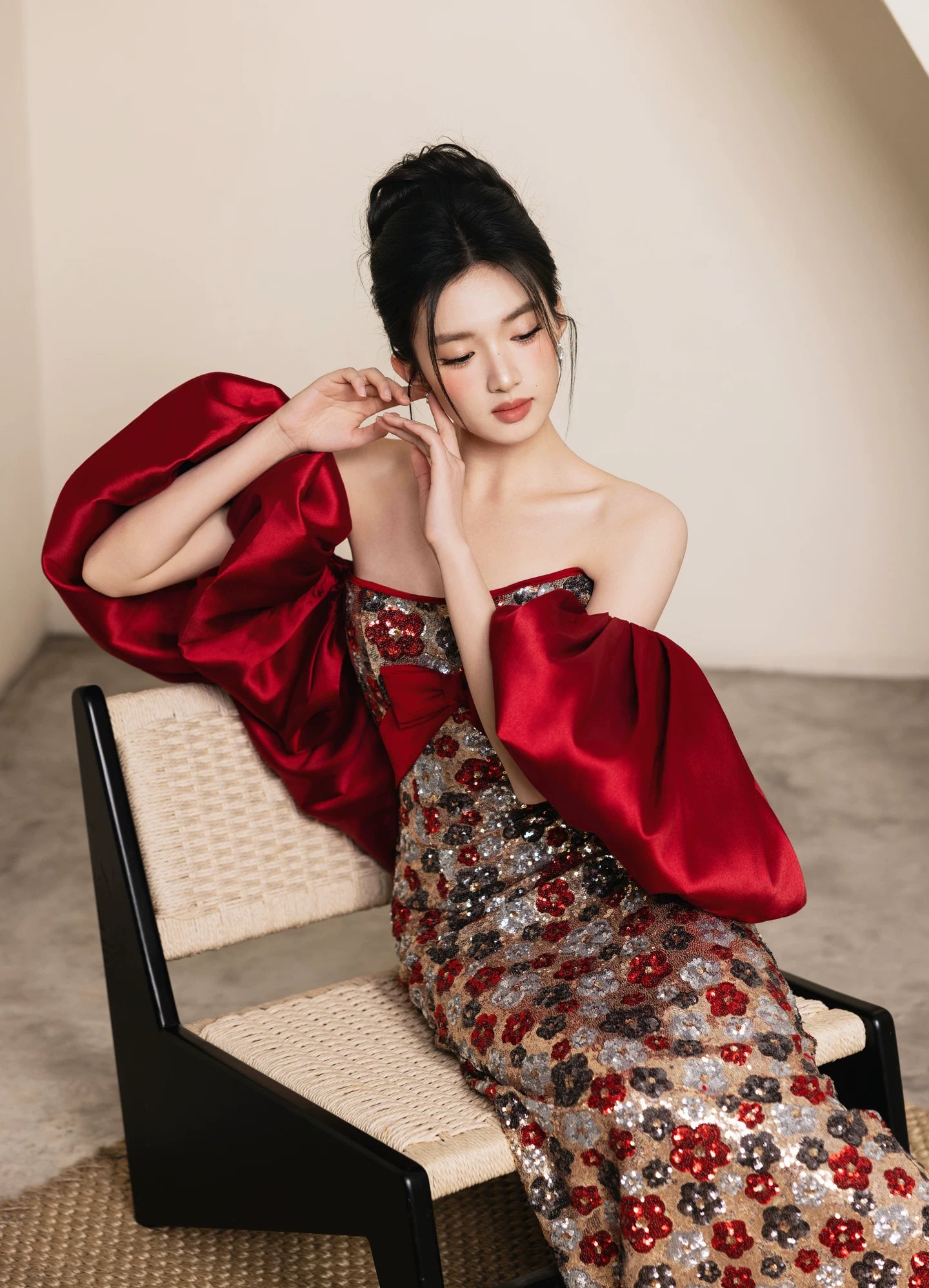 - Available in Flower Sequin [Luna] and Red Bubble Sleeve styles