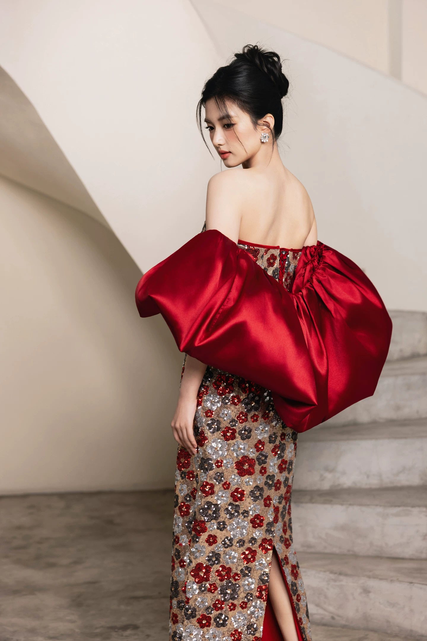Luminous, lavish, and utterly unforgettable — the Luna Wedding Dress by Momano is a masterpiece of heavy-industry craftsmanship. Adorned with intricate flower sequin embellishments and finished with an elegant bow detail, this bridal cheongsam qipao is designed for the bride who wants to shine on her most important day.