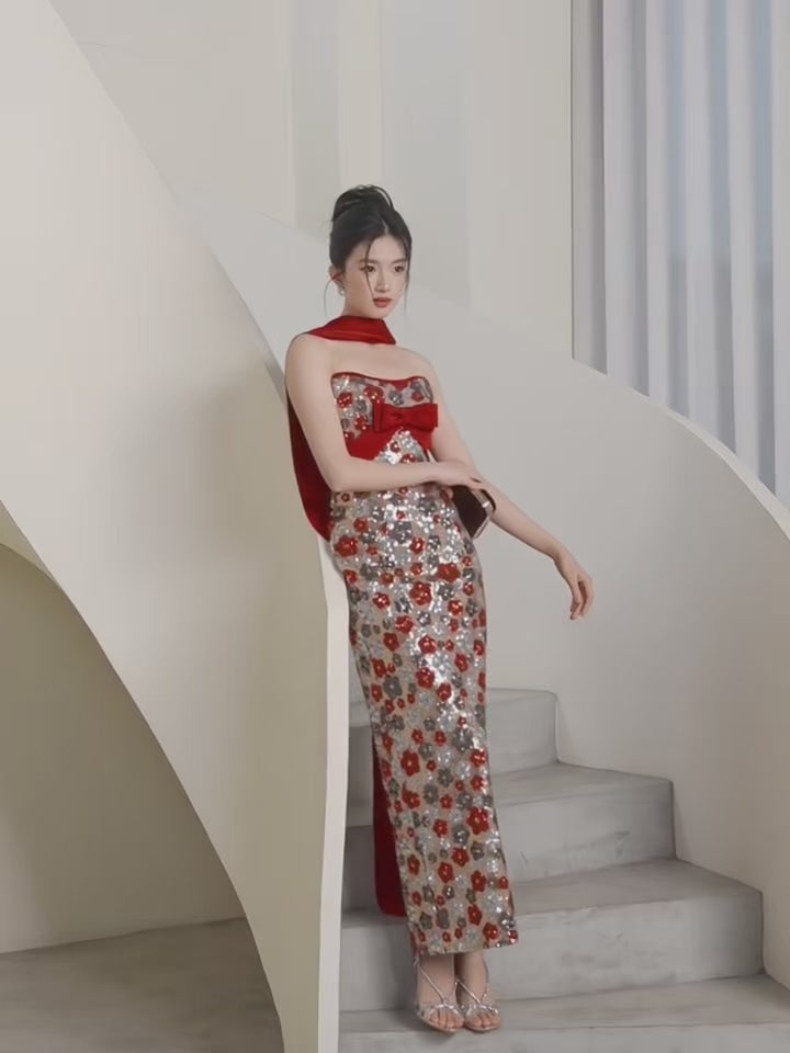 Luna Flower Sequin Wedding Dress | Bridal Cheongsam Qipao