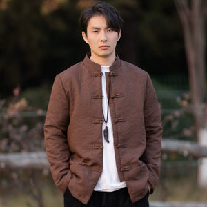 This New Chinese style jacket represents the perfect fusion of traditional Chinese menswear with contemporary design sensibilities. The disc button (盘扣) is one of the most iconic elements of traditional Chinese clothing, representing centuries of craftsmanship and cultural heritage. Combined with the classic Mao suit silhouette and modern splicing details, this jacket offers a sophisticated look that honors tradition while embracing modern style.