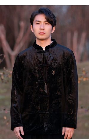 New Chinese Velvet Tang Suit Jacket | Improved Mao Suit Men's Top