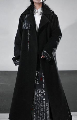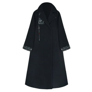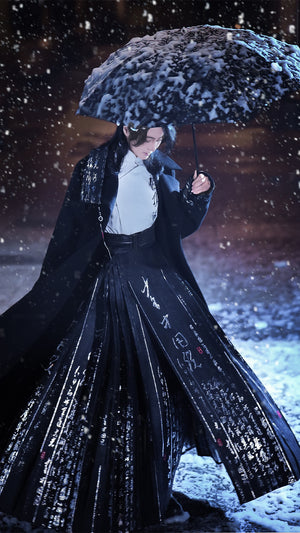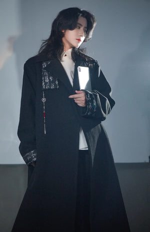 Nuevo abrigo chino de lana tejido en negro y plateado con falda de caballo para hombre y mujer.