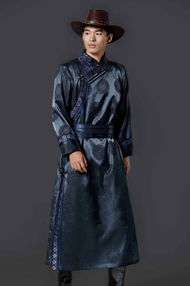 This elegant men's Mongolian robe combines traditional design with practical wearability, perfect for daily life, cultural performances, and special occasions. Featuring the classic long robe silhouette characteristic of authentic Mongolian men's clothing, this versatile garment honors Mongolian heritage while offering comfort and style for contemporary wear. Ideal for cultural celebrations, traditional performances, and anyone seeking authentic Mongolian ethnic clothing.