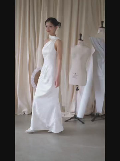 Vestido de novia "Pianrou" con lazo de jacquard blanco, vestido de novia con nudo para brindis, banquete de compromiso, bar mitzvá